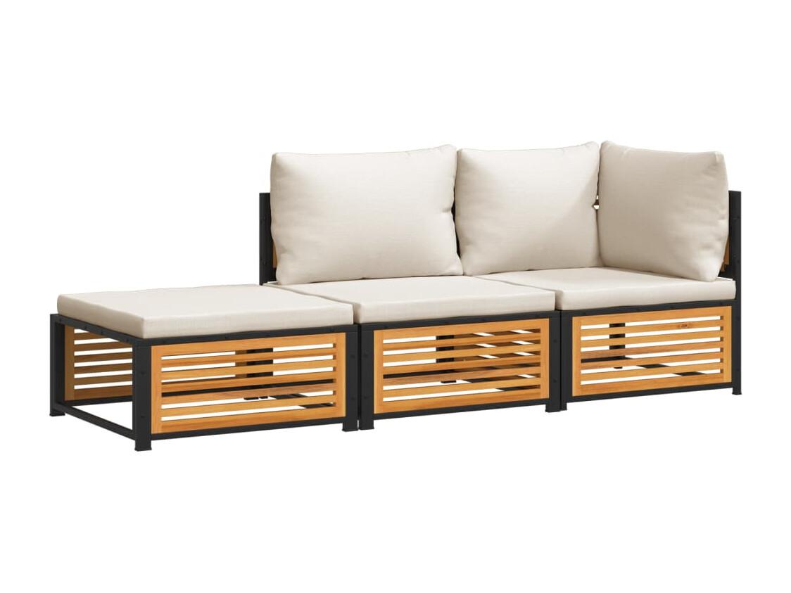 Set de sofás de jardín con cojines 3 piezas madera maciza acacia