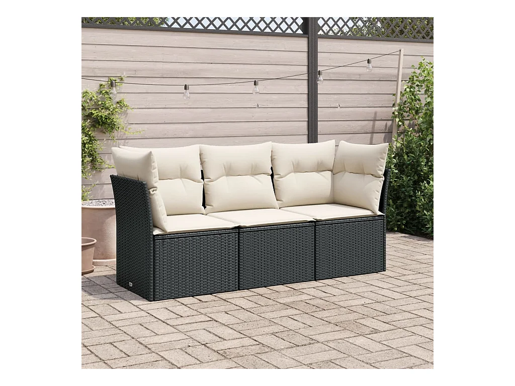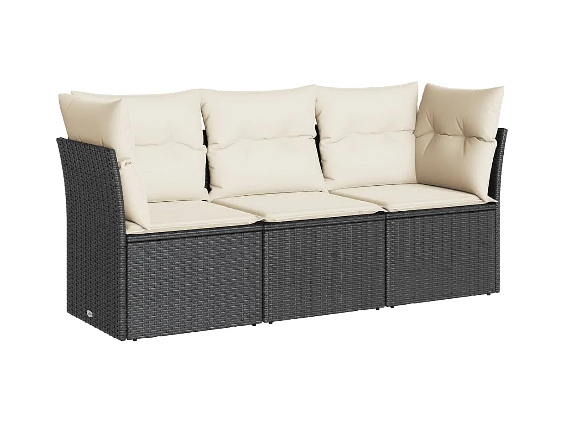 Set de sofás de jardín con cojines 3 pzas ratán sintético negro