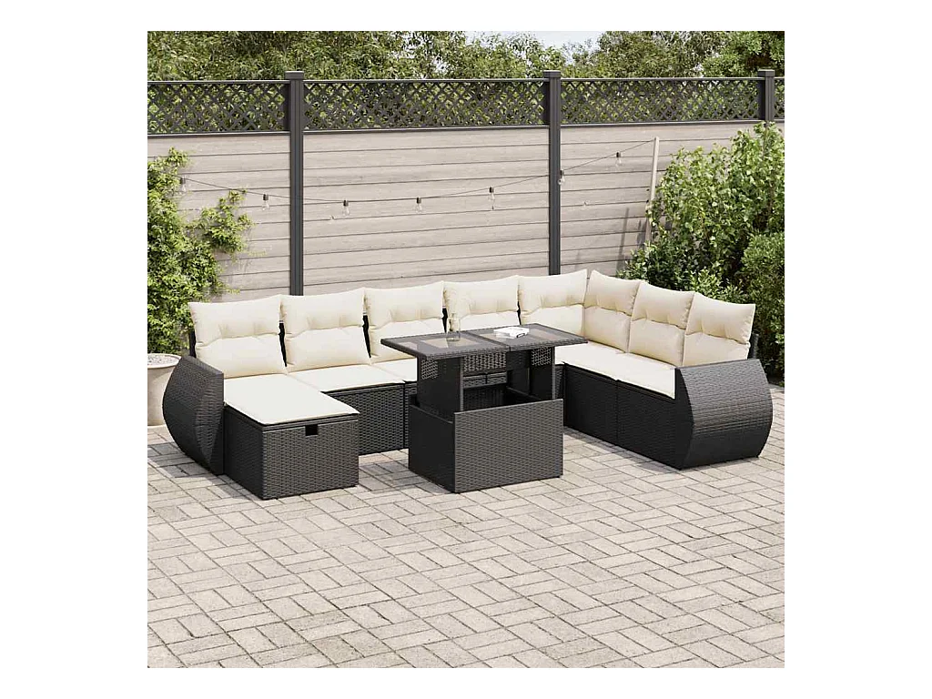 Set de sofás de jardín con cojines 9 piezas ratán sintético negro
