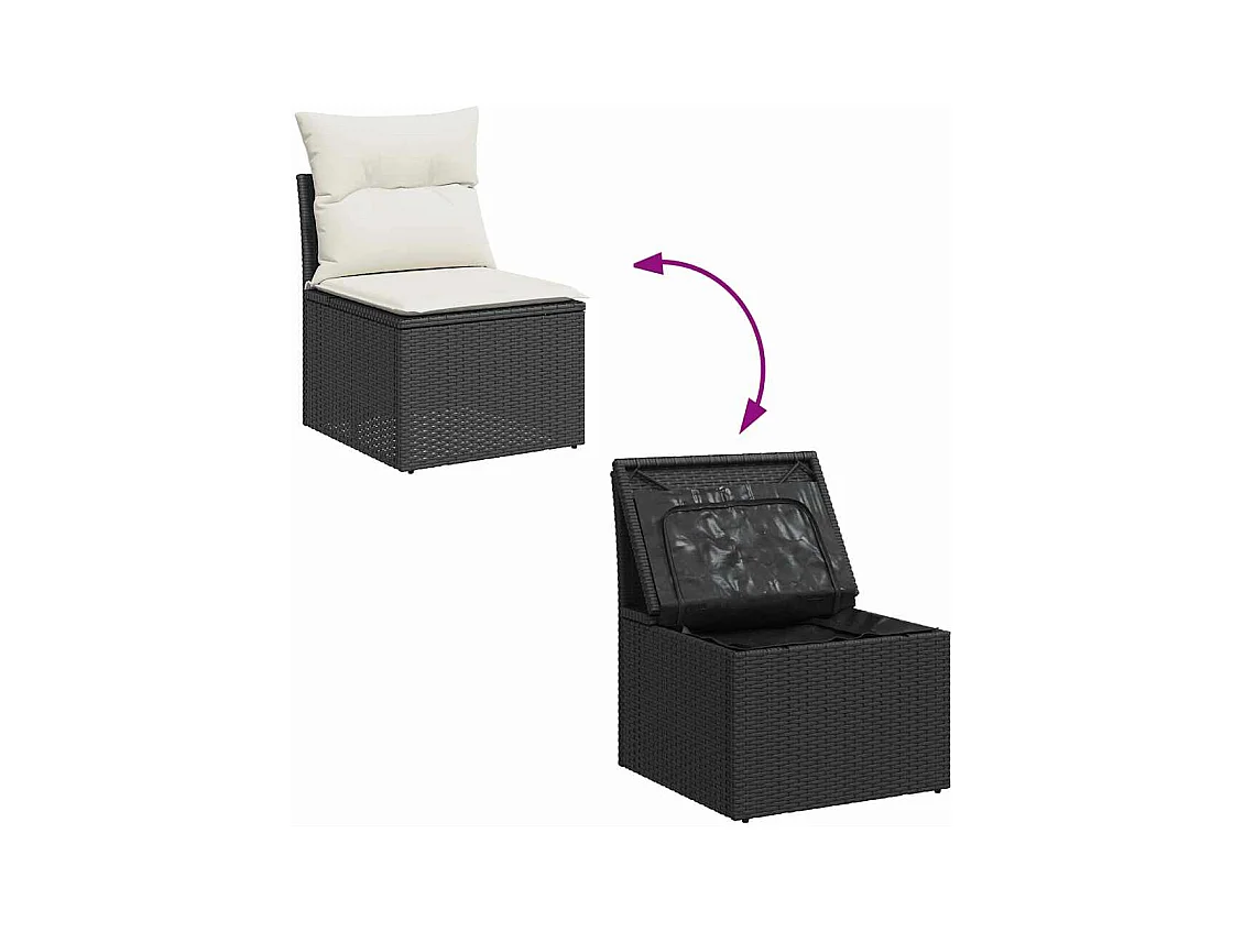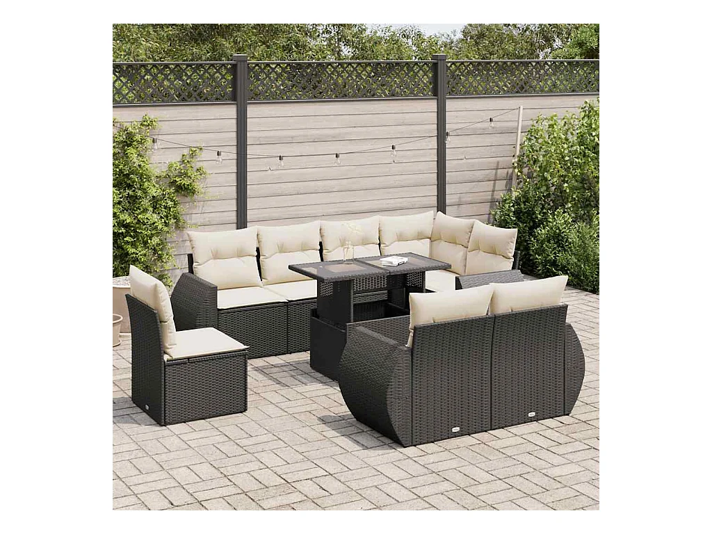 Set de sofás de jardín con cojines 9 piezas ratán sintético negro