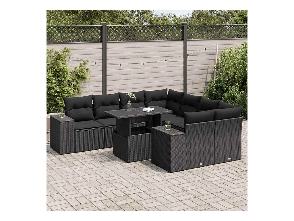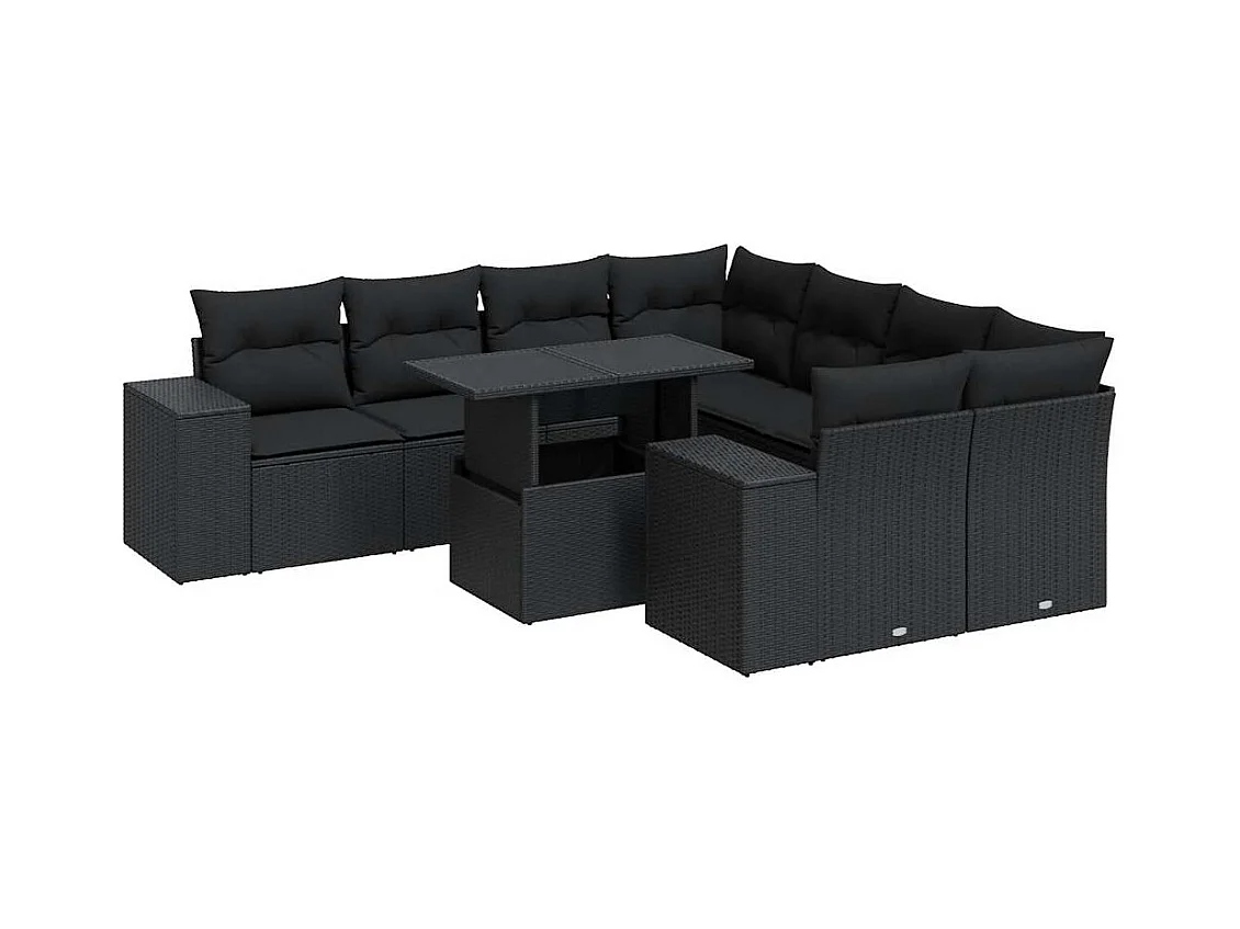 Set de sofás de jardín con cojines 9 piezas ratán sintético negro