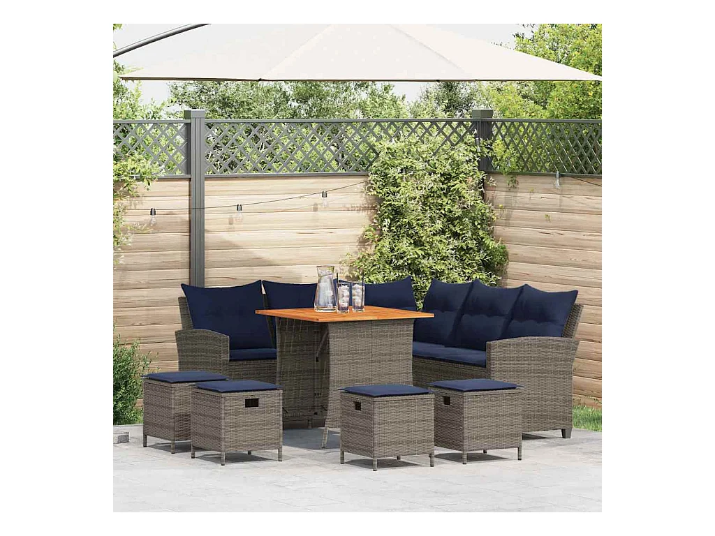 Set de sofás de jardín 7 pzas con cojines ratán PE gris claro