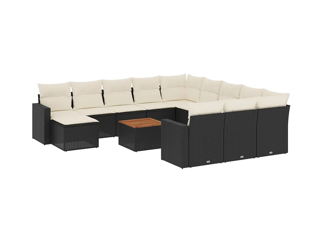 Set de sofás de jardín y cojines 13 piezas ratán sintético negro