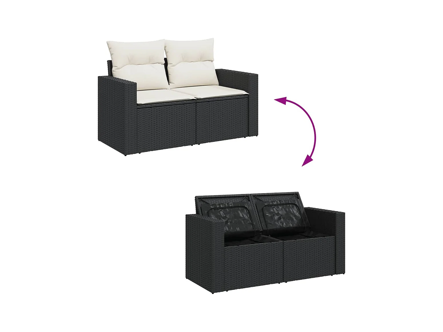 Set sofás de jardín 14 piezas con cojines ratán sintético negro