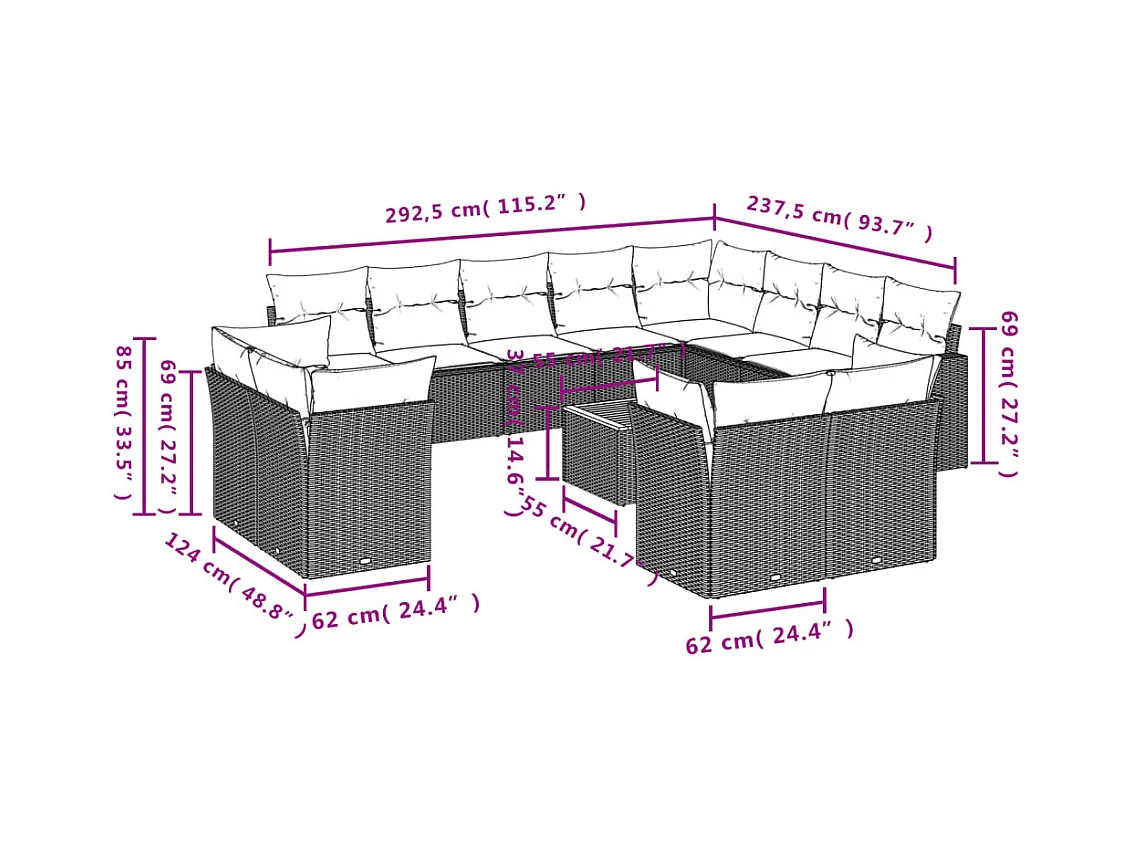 Set de sofás de jardín y cojines 14 piezas ratán sintético negro
