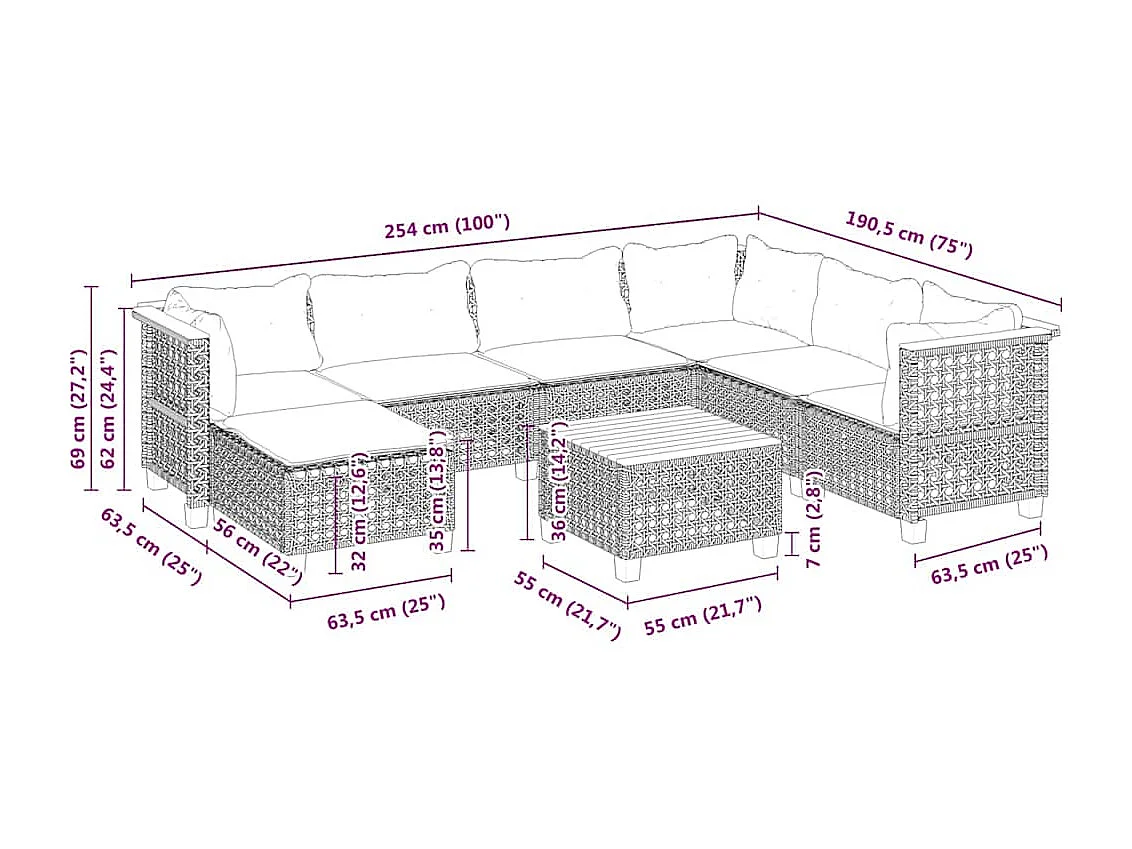 Set de sofás de jardín y cojines 8 piezas ratán sintético beige