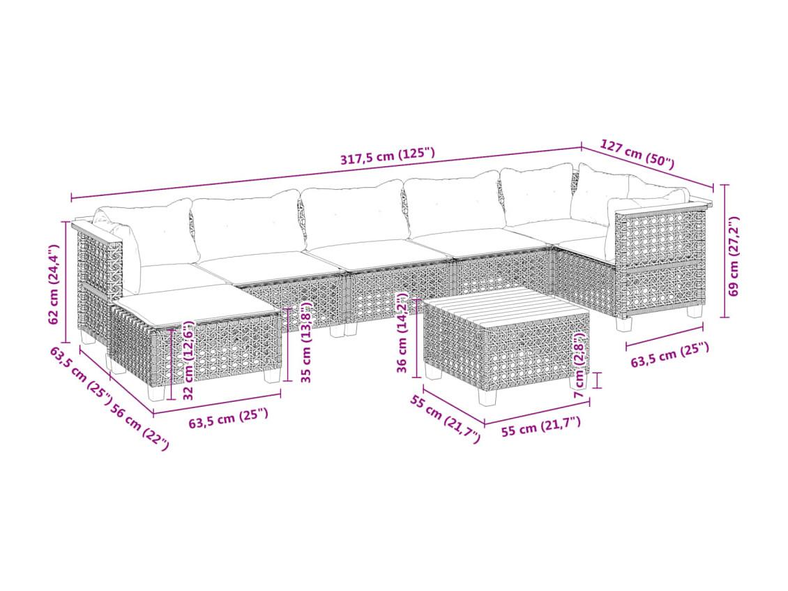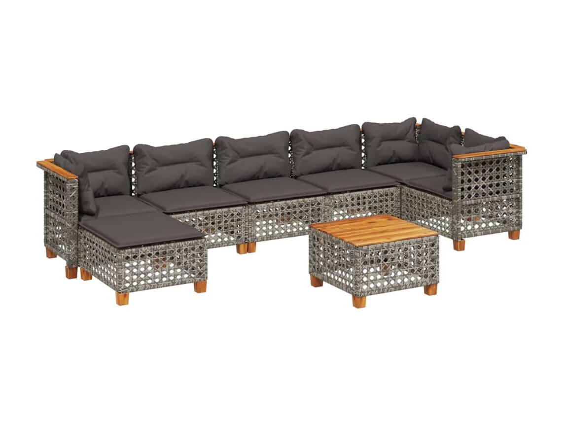 Set de sofás de jardín y cojines 8 piezas ratán sintético gris