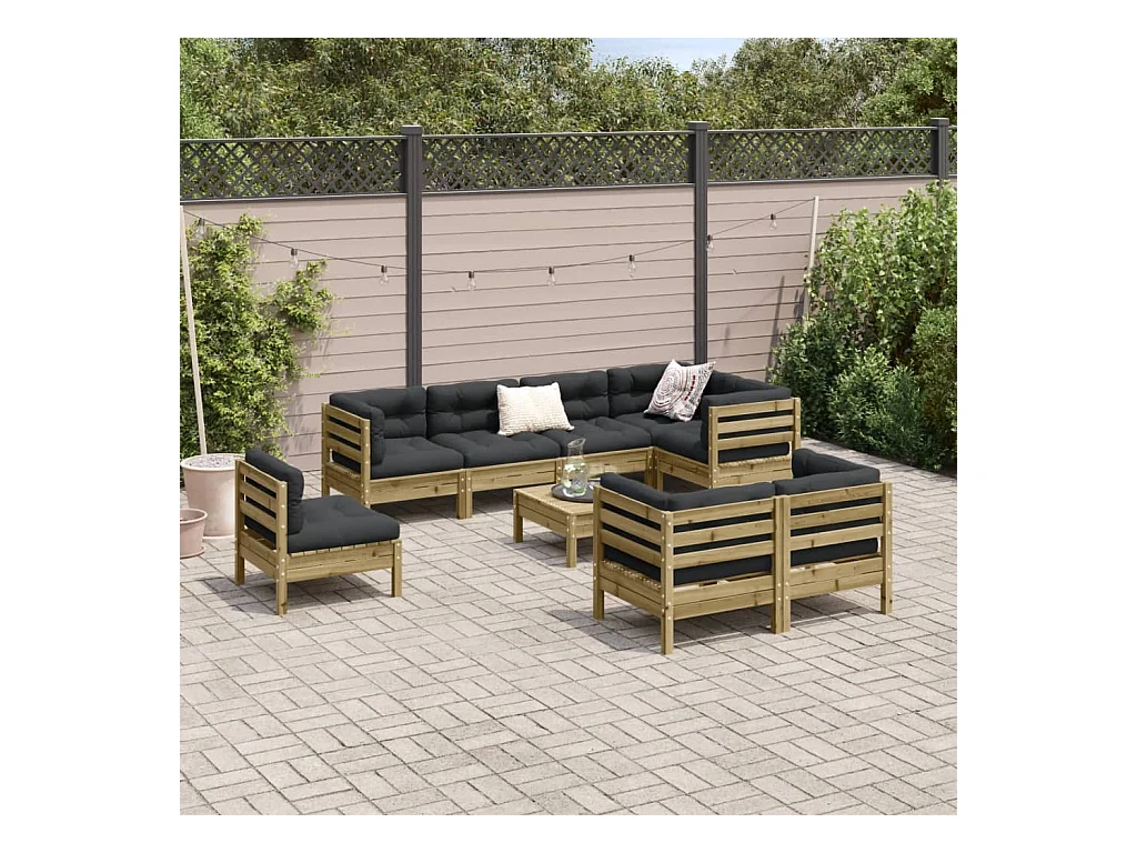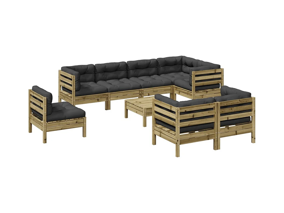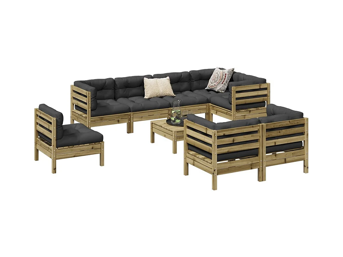 Set de sofás jardín 9 piezas con cojines madera pino impregnada