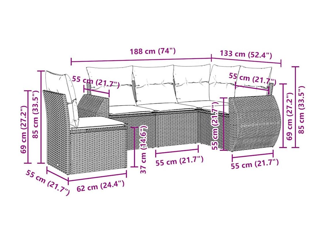 Set de sofás jardín y cojines 5 piezas ratán sintético gris claro