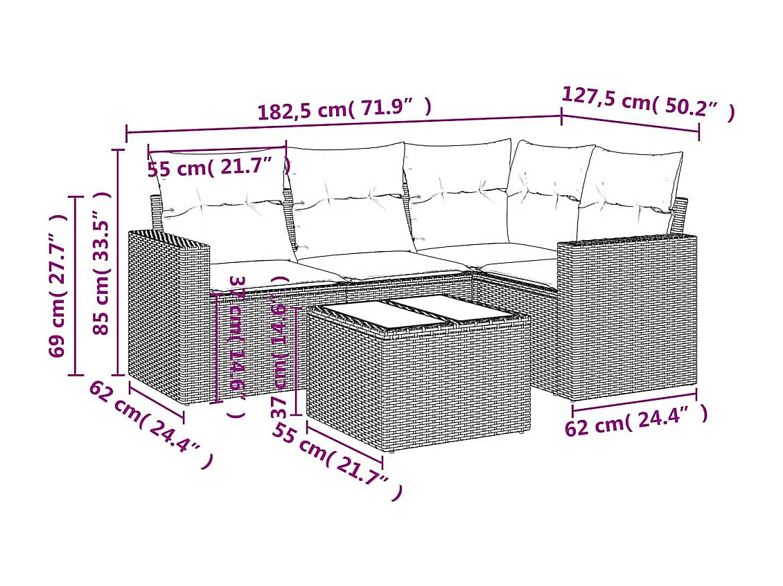 Set de sofás jardín y cojines 5 piezas ratán sintético gris claro
