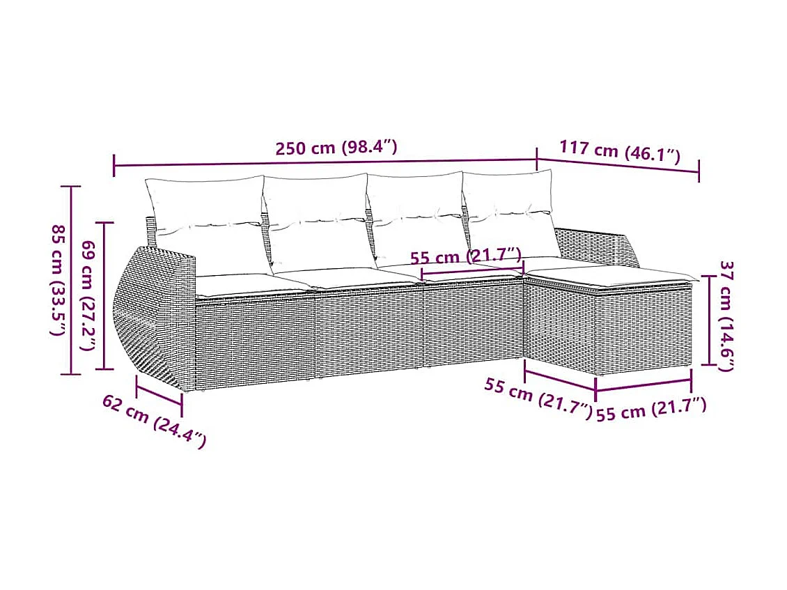 Set de sofás jardín y cojines 5 piezas ratán sintético gris claro