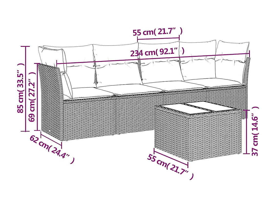 Set de sofás jardín y cojines 5 piezas ratán sintético gris claro