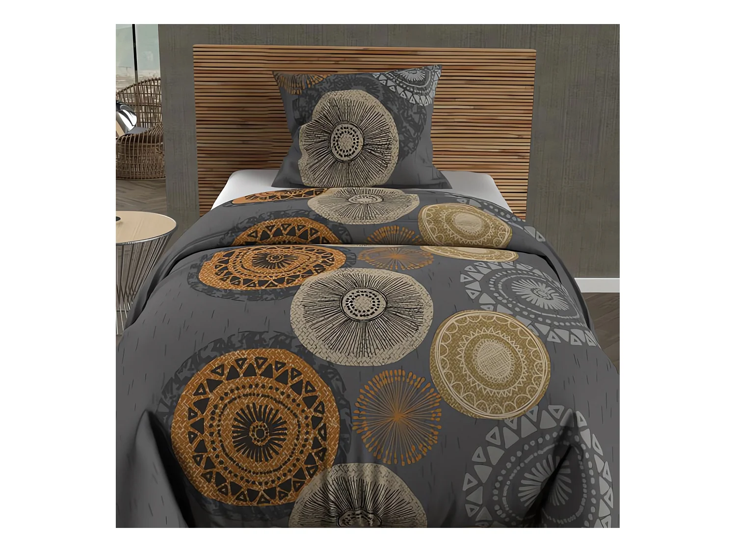 Set funda nórdica de algodón 57 hilos 140x200 cm MASSAI gris