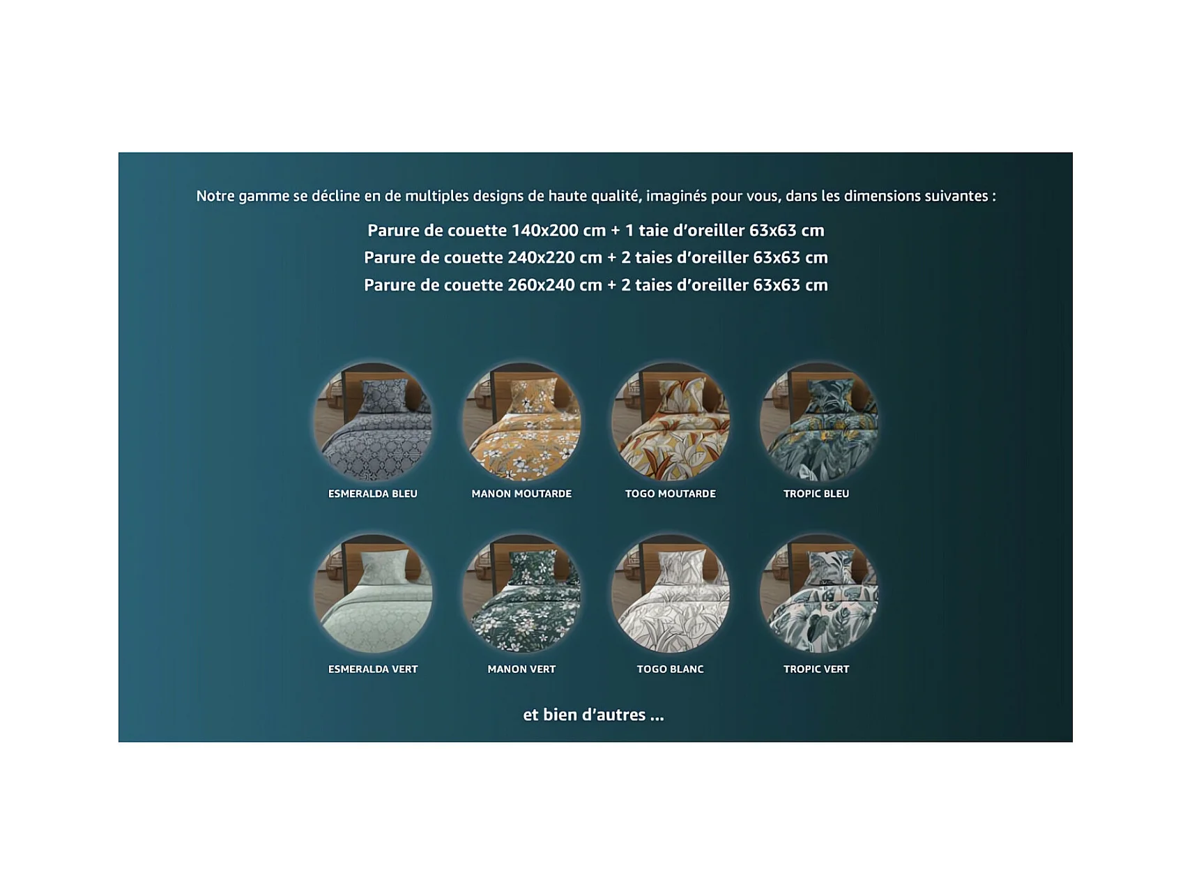 Set funda nórdica de algodón 57 hilos 140x200 cm ESMERALDA green de Ocre Sun