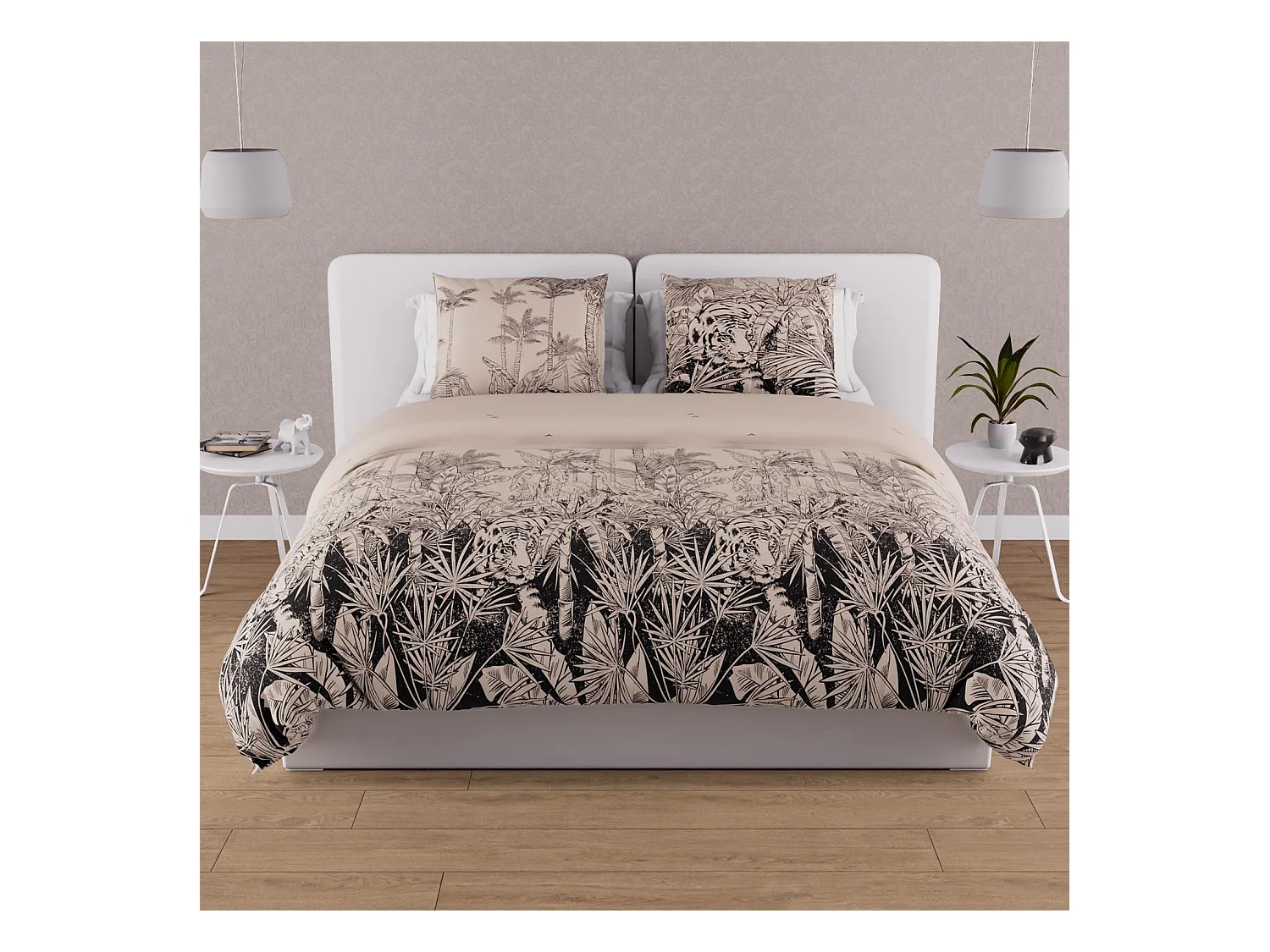 Set funda nórdica de algodón 57 hilos 240x220 cm TIGER sand