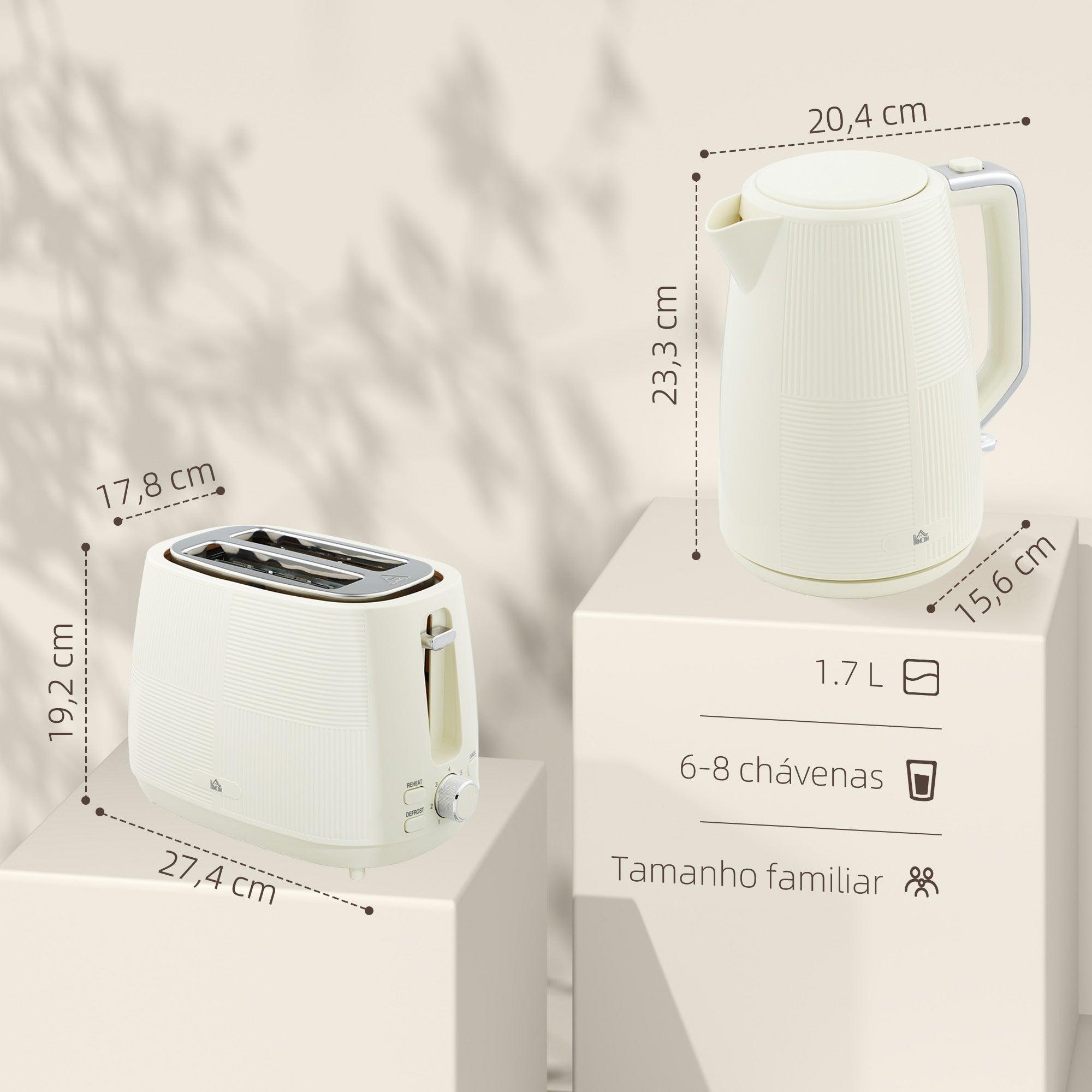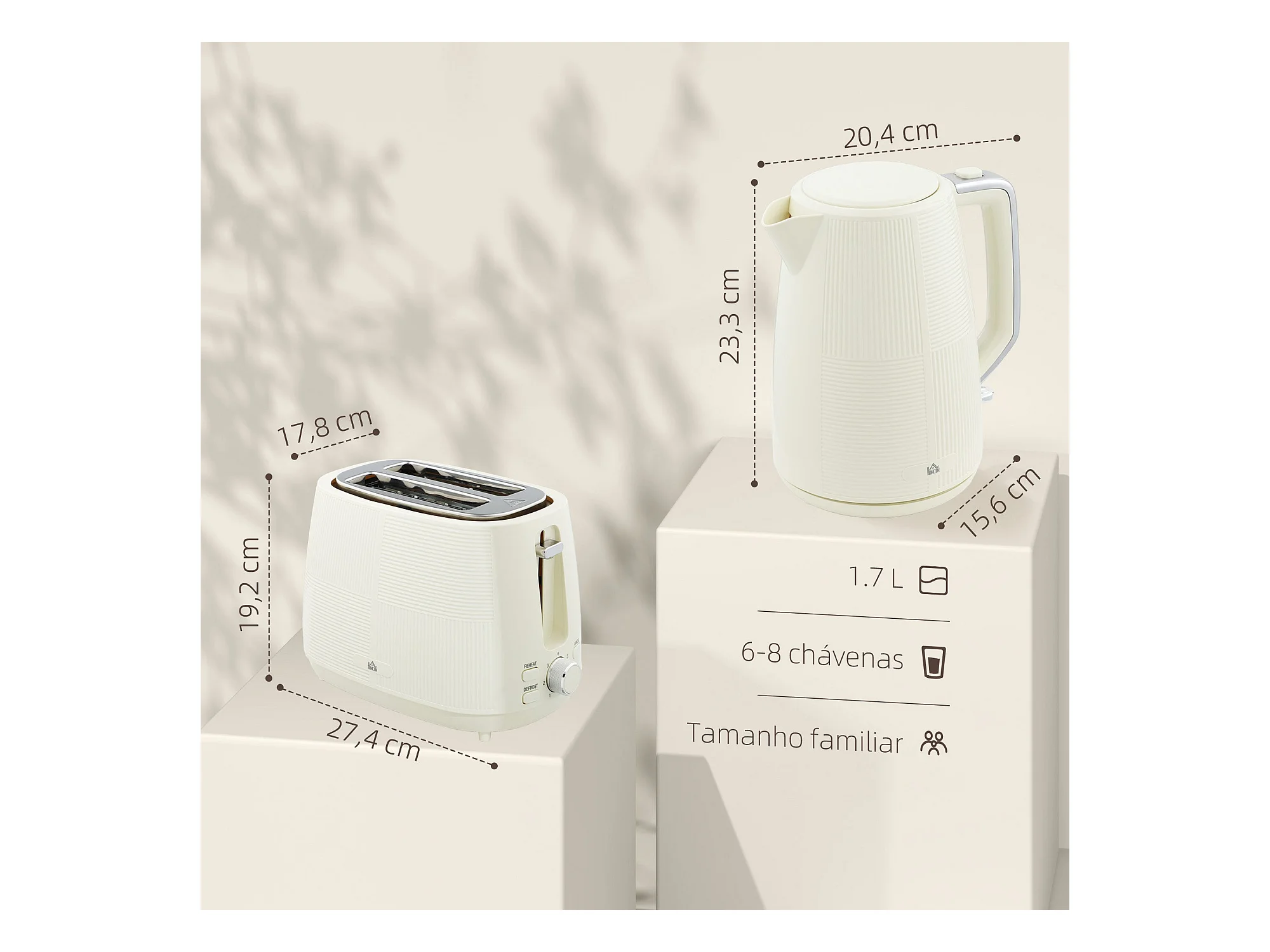 Set hervidor + tostador Homcom 2200W 1,7L 2 rebanadas crema