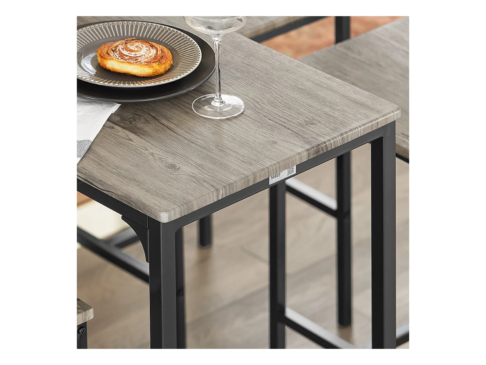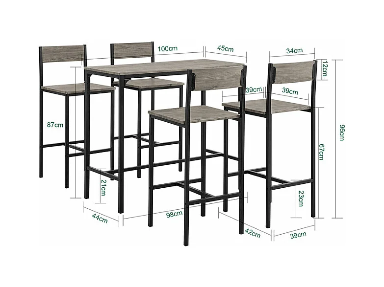 Set Mesa Alta de Bar y 4 Taburetes Estilo Industrial 4 sillas OGT11-N SoBuy ES