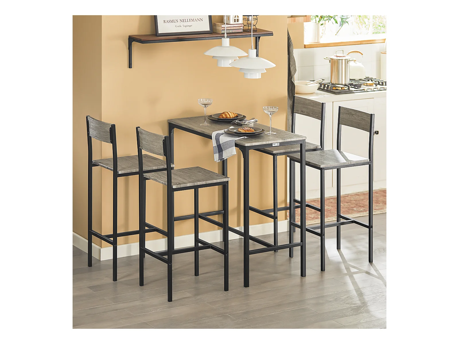Set Mesa Alta de Bar y 4 Taburetes Muebles Bar Comedor OGT15-N SoBuy ES