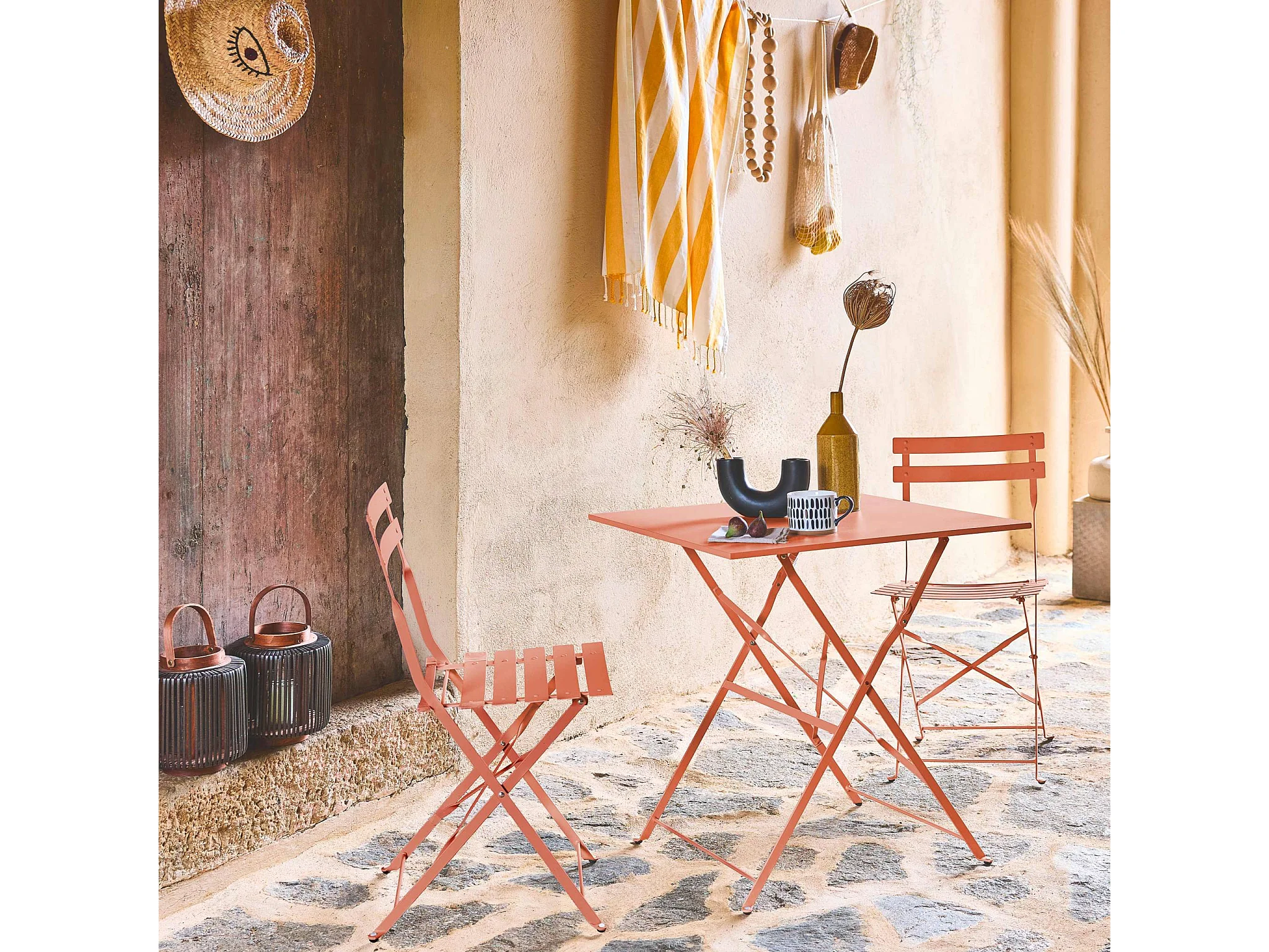 Set mesa de jardín bistró plegable de acero con 2 sillas, 70cm rosa