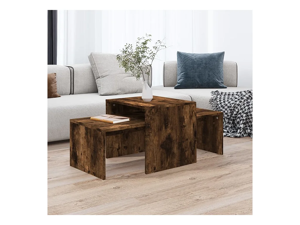 Set mesas centro madera contrachapada roble ahumado 100x48x40cm ES20469