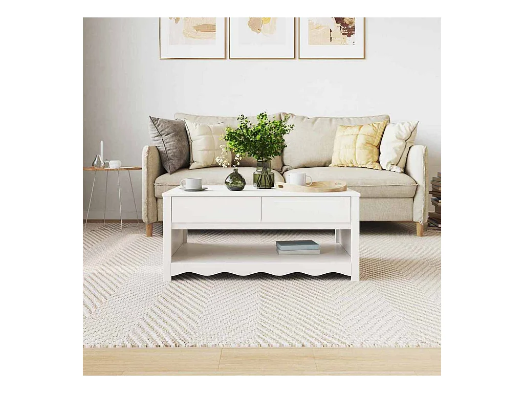 Mesa de centro FLORO madera maciza de pino blanco 99x55,5x45 cm