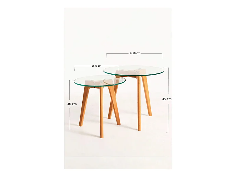Set de mesas auxiliares 2 piezas vidrio templado