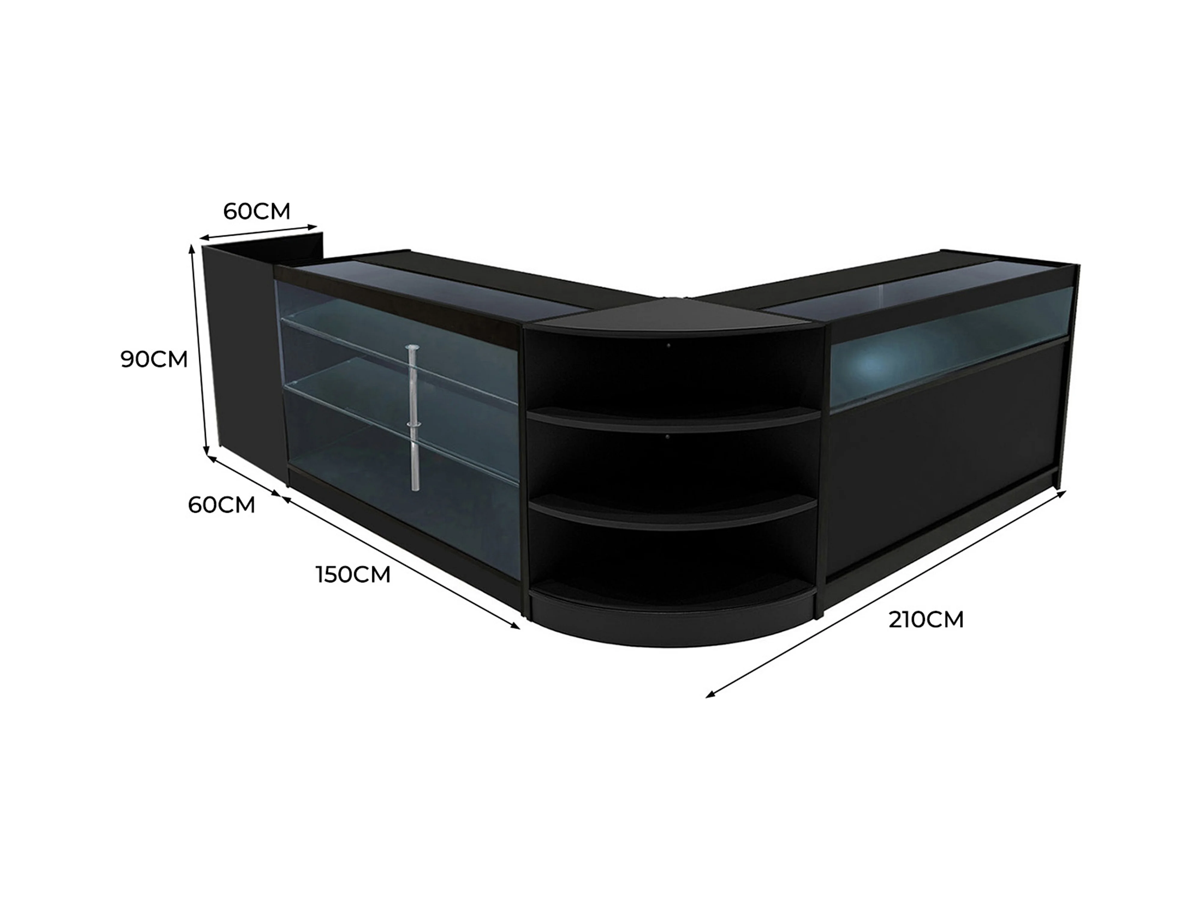 Set Mostradores Comerciales con Luz LED "HYPERION" LM60 + B1500 + K1500 + TB60 – Negro