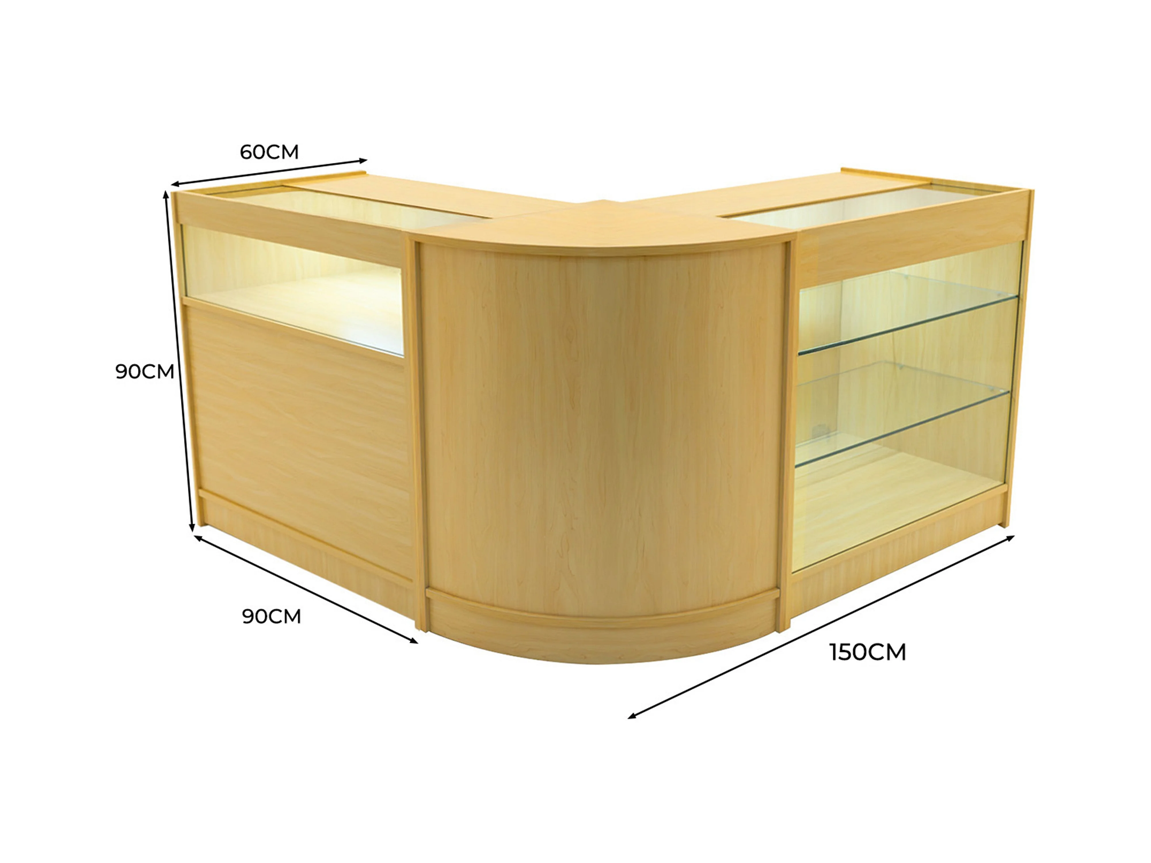 Set Mostradores Comerciales con Luz LED "TRITON" CM60 + K900 + B900 – Arce