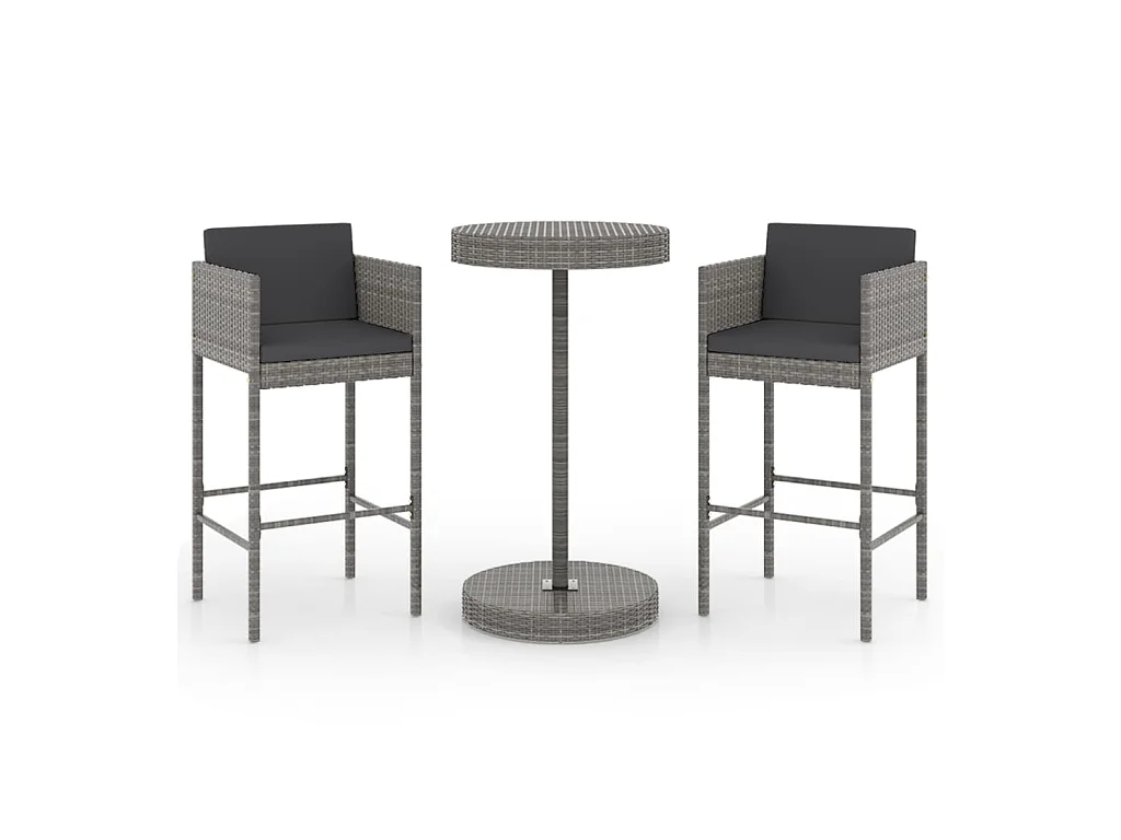 Juego muebles de bar para jardín 3 piezas y cojines gris ES938170