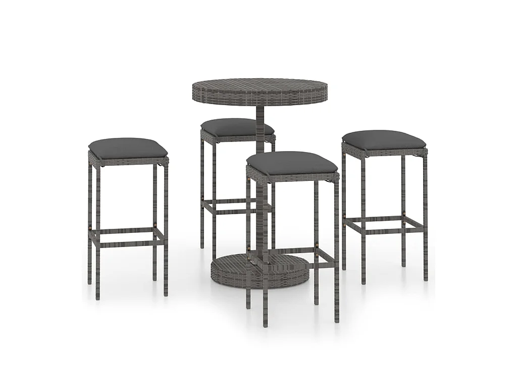 Set de bar para jardín 5 piezas y cojines ratán sintético gris ES593739