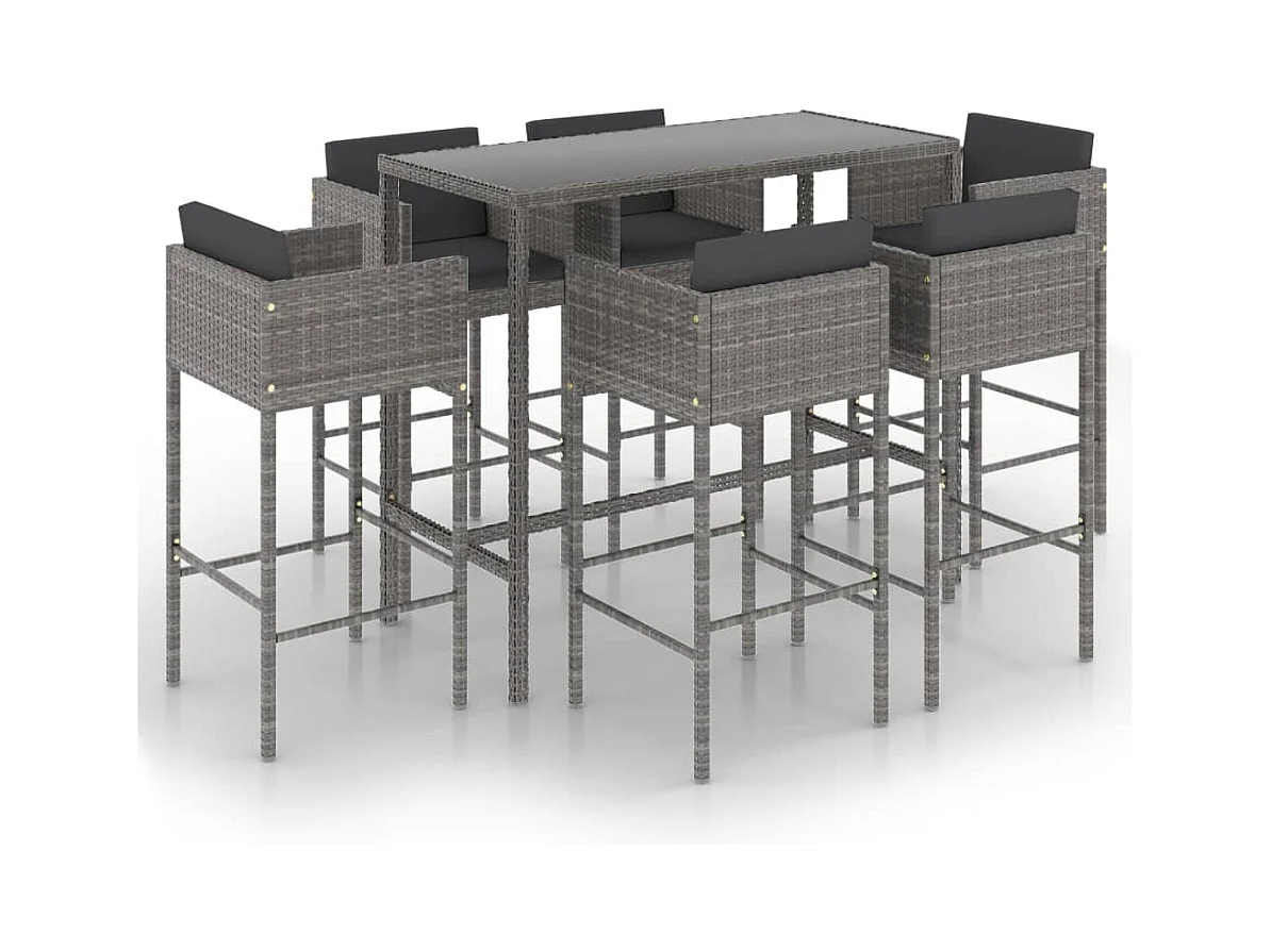 Set muebles de bar jardín 7 pzas y cojines ratán sintético gris