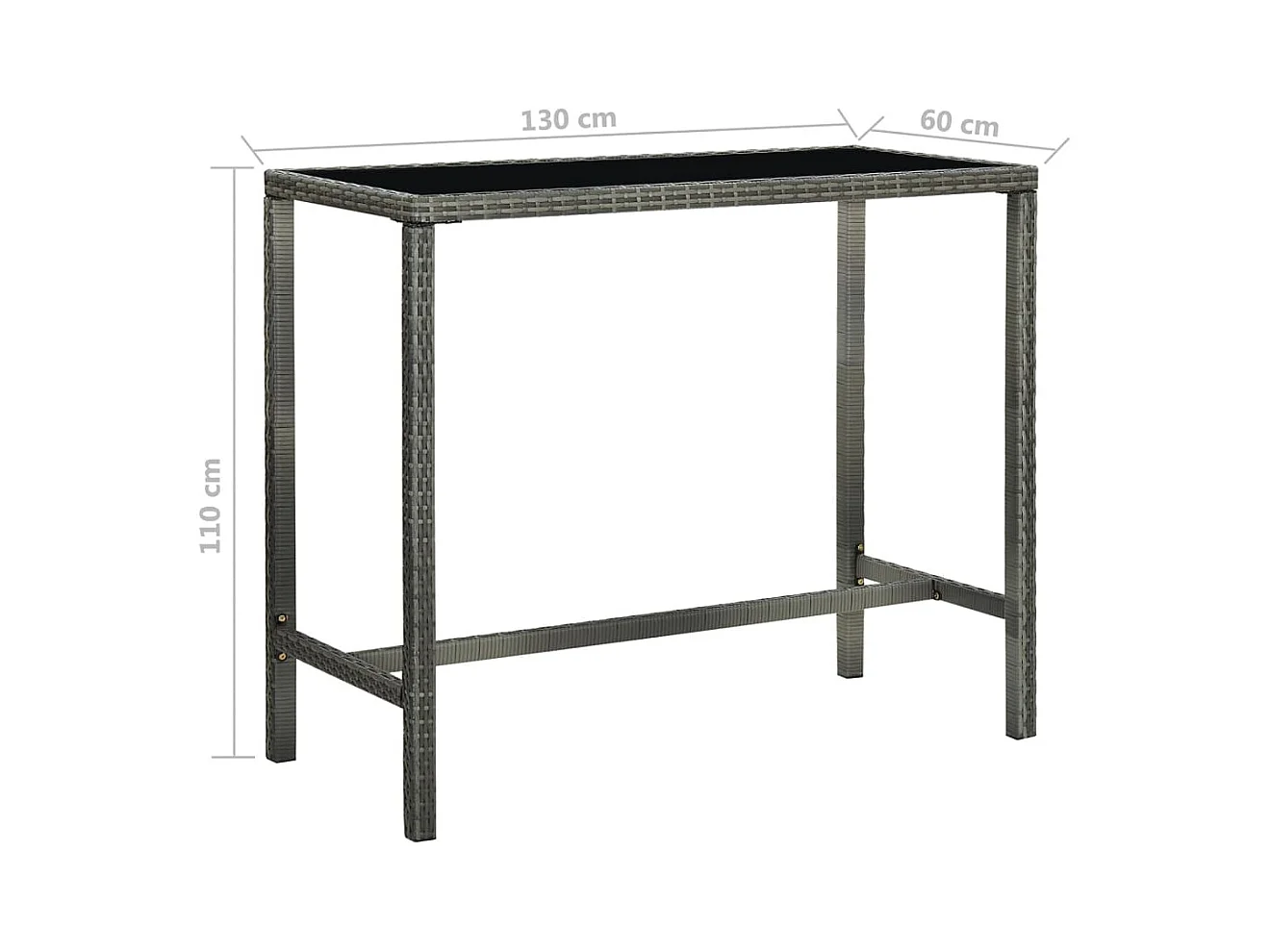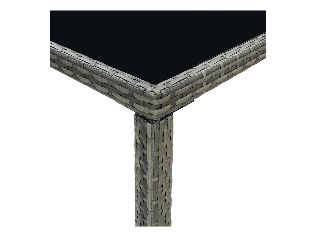 Mesa y taburetes altos jardín y cojines 7 pzas ratán PE gris