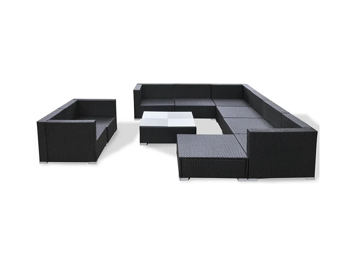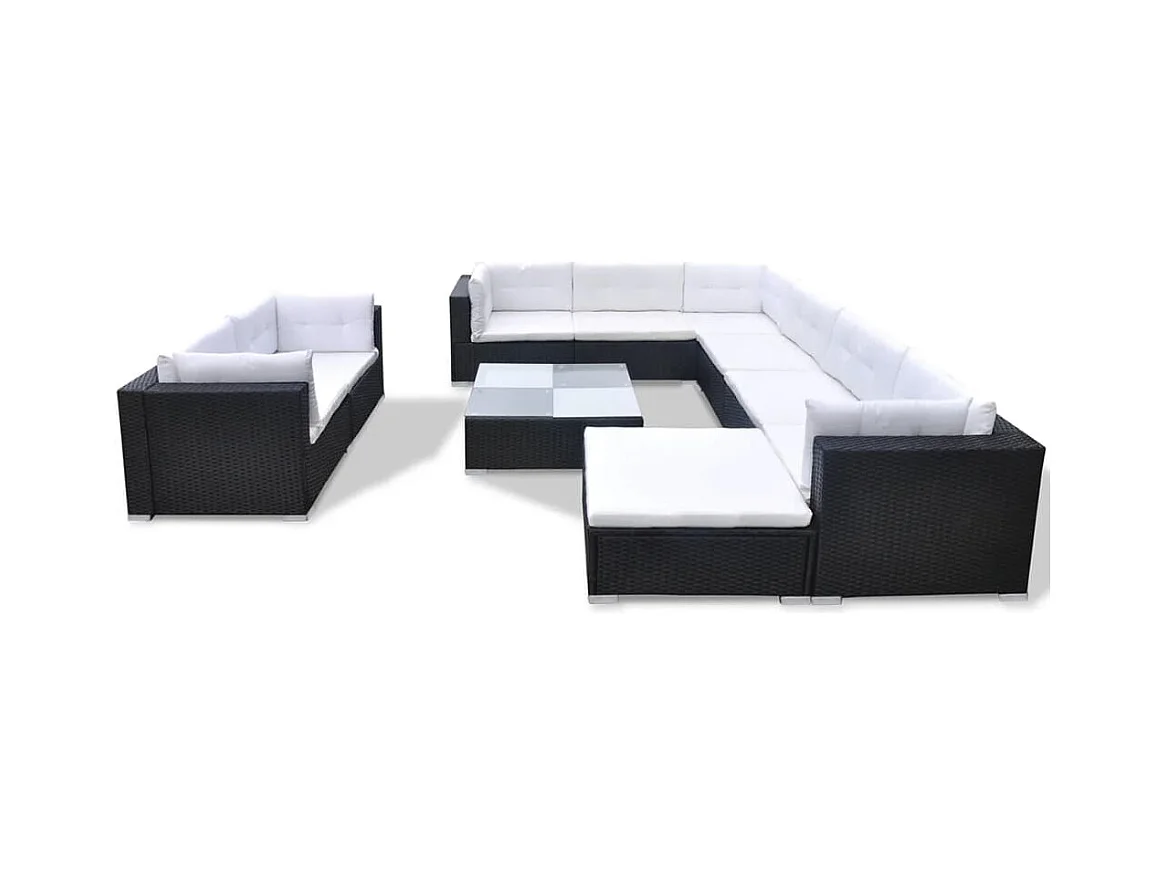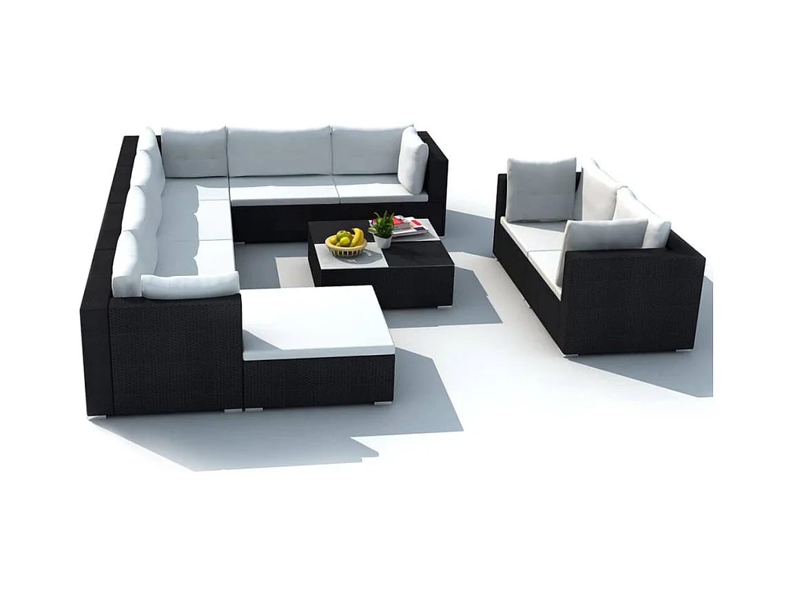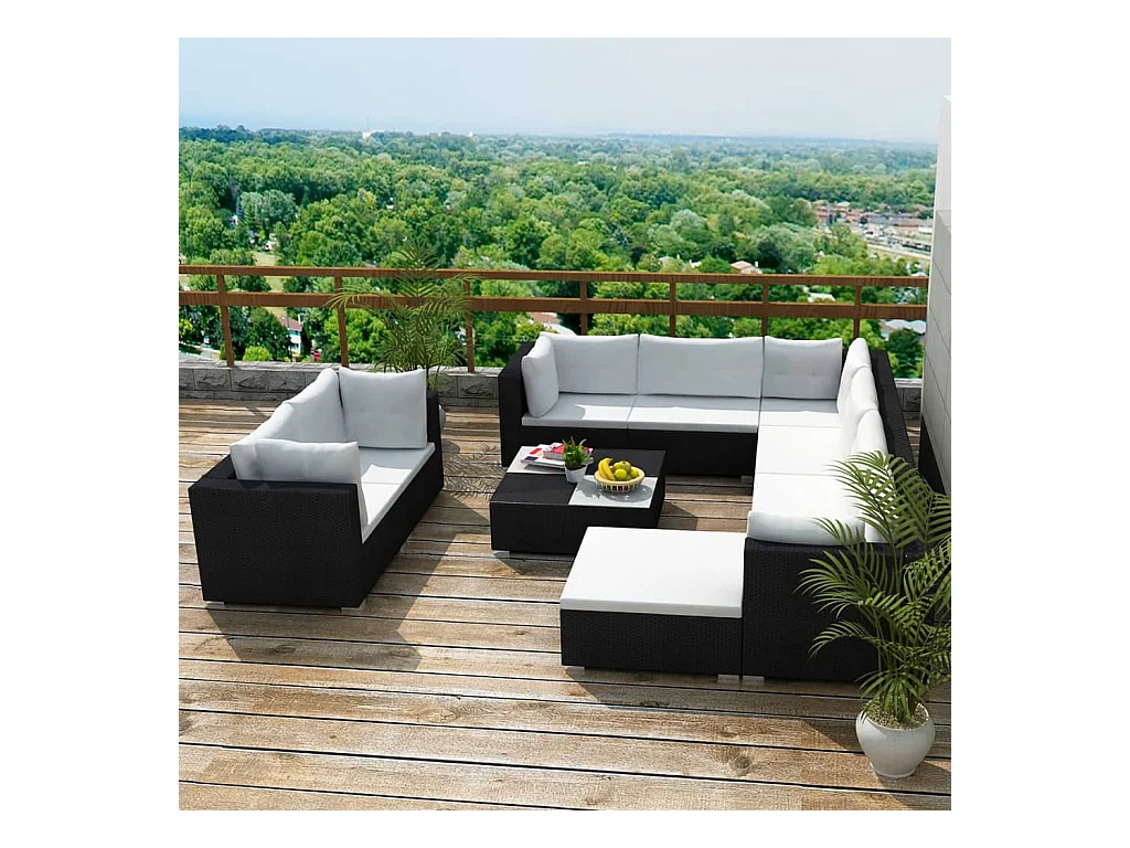 Set muebles de jardín 10 piezas y cojines ratán sintético negro