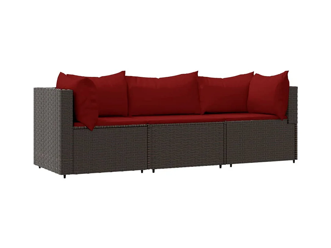Set muebles de jardín 3 piezas y cojines ratán sintético marrón KOW59220