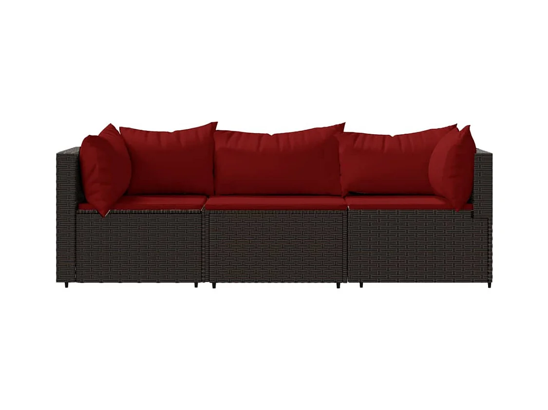 Set muebles de jardín 3 piezas y cojines ratán sintético marrón KOW99497