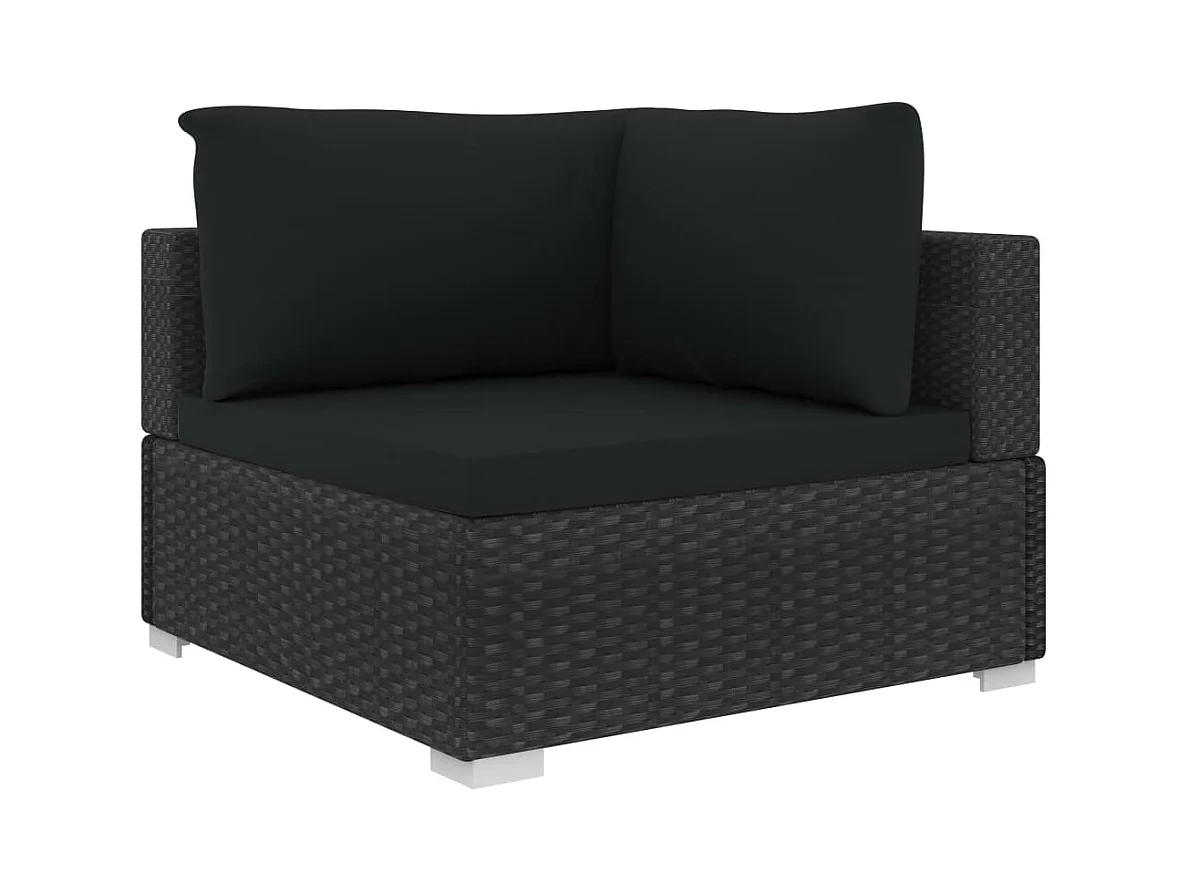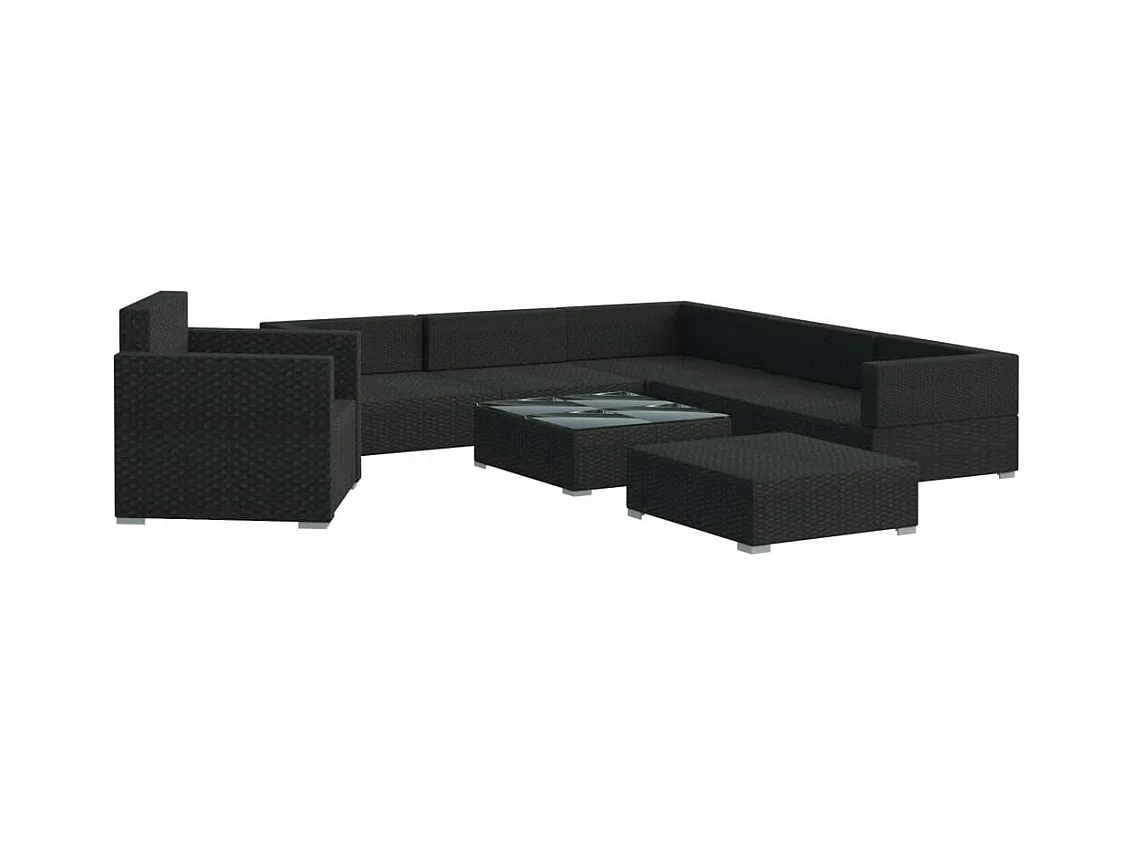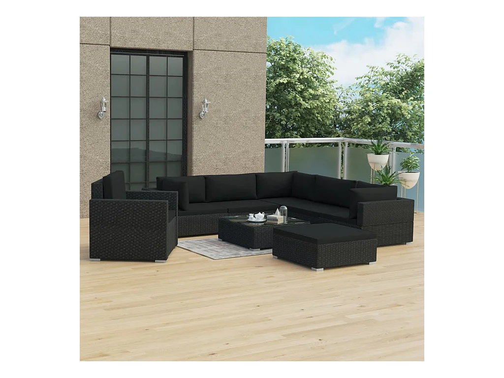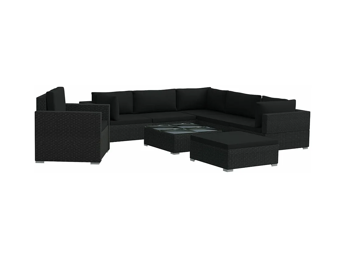 Set muebles de jardín 8 piezas y cojines ratán sintético negro