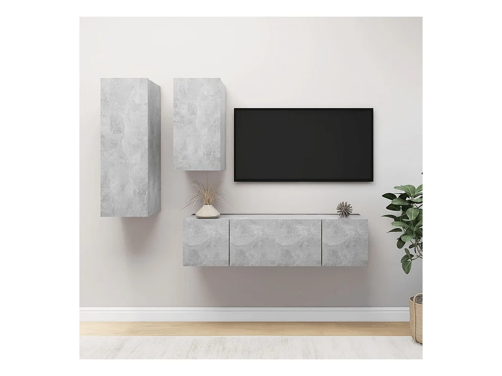 Muebles de salón | Gabinetes de TV | Muebles de TV colgantes 3 unidades gris hormigón 60x30x30 cm