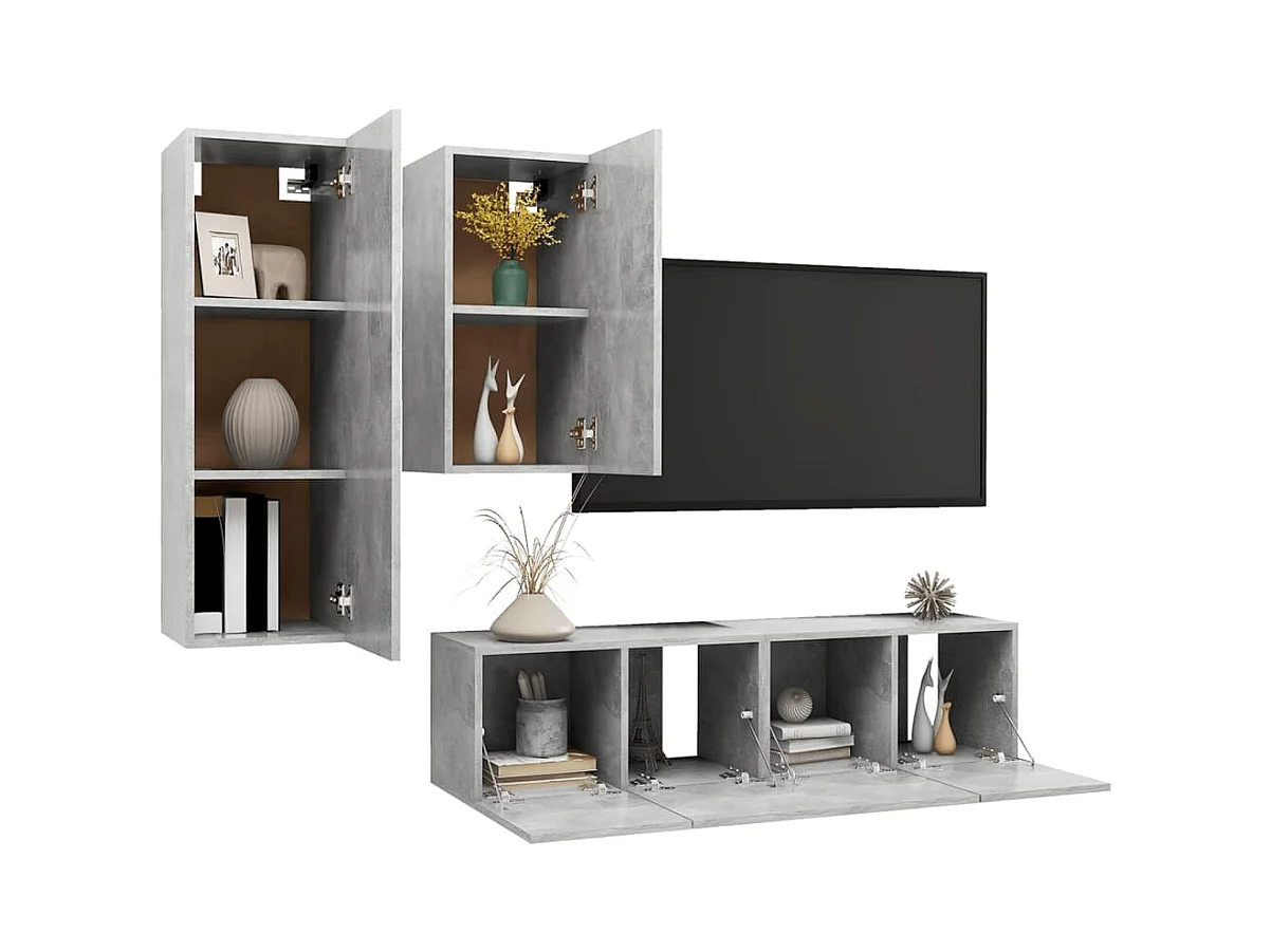 Set de Muebles de salón | Gabinetes de TV | Muebles de TV 4 pzas madera ingeniería gris hormigón