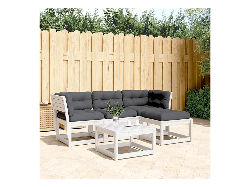Juego de sofás de jardín 5 piezas madera maciza de pino blanco