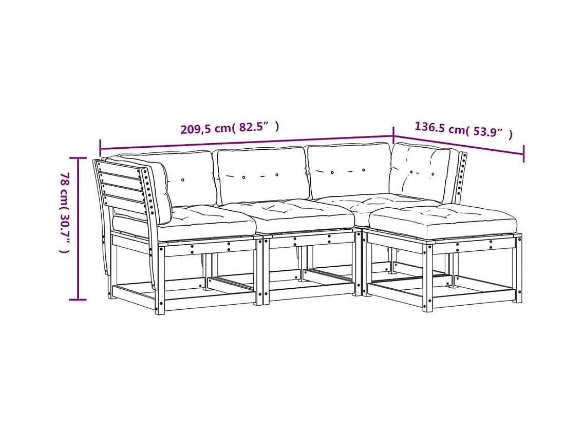 Juego de muebles de jardín 4 pzas madera maciza de pino blanco