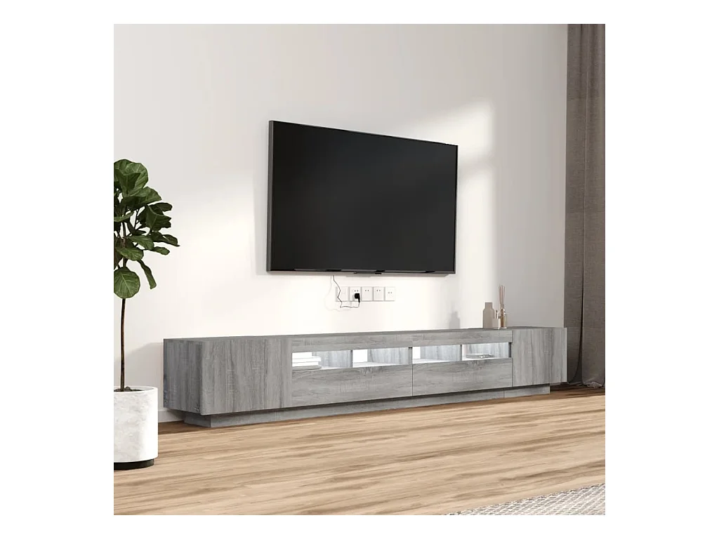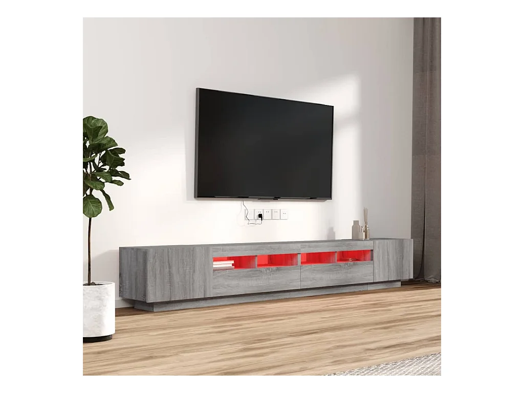 Set muebles TV | Gabinetes de TV | Muebles de salón con LEDs 3 pzas madera contrachapada gris Sonoma