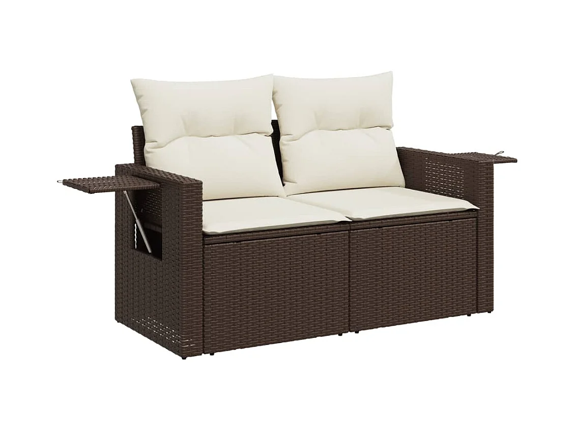Set sofás de jardín 6 piezas y cojines ratán sintético marrón