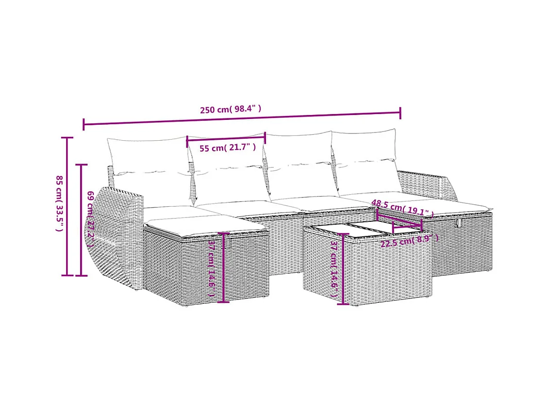 Set sofás de jardín 6 piezas y cojines ratán sintético marrón