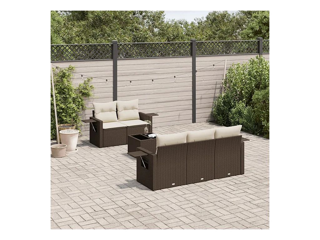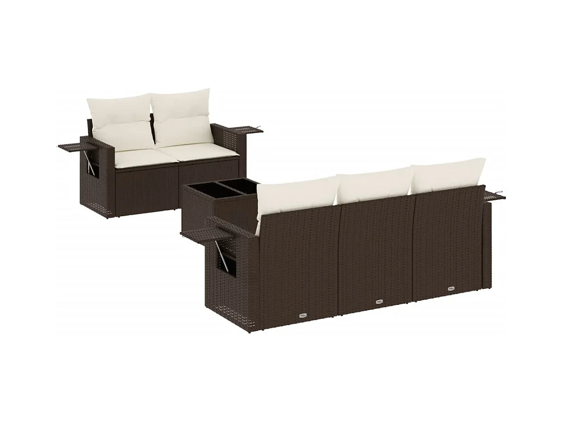 Set sofás de jardín 6 piezas y cojines ratán sintético marrón
