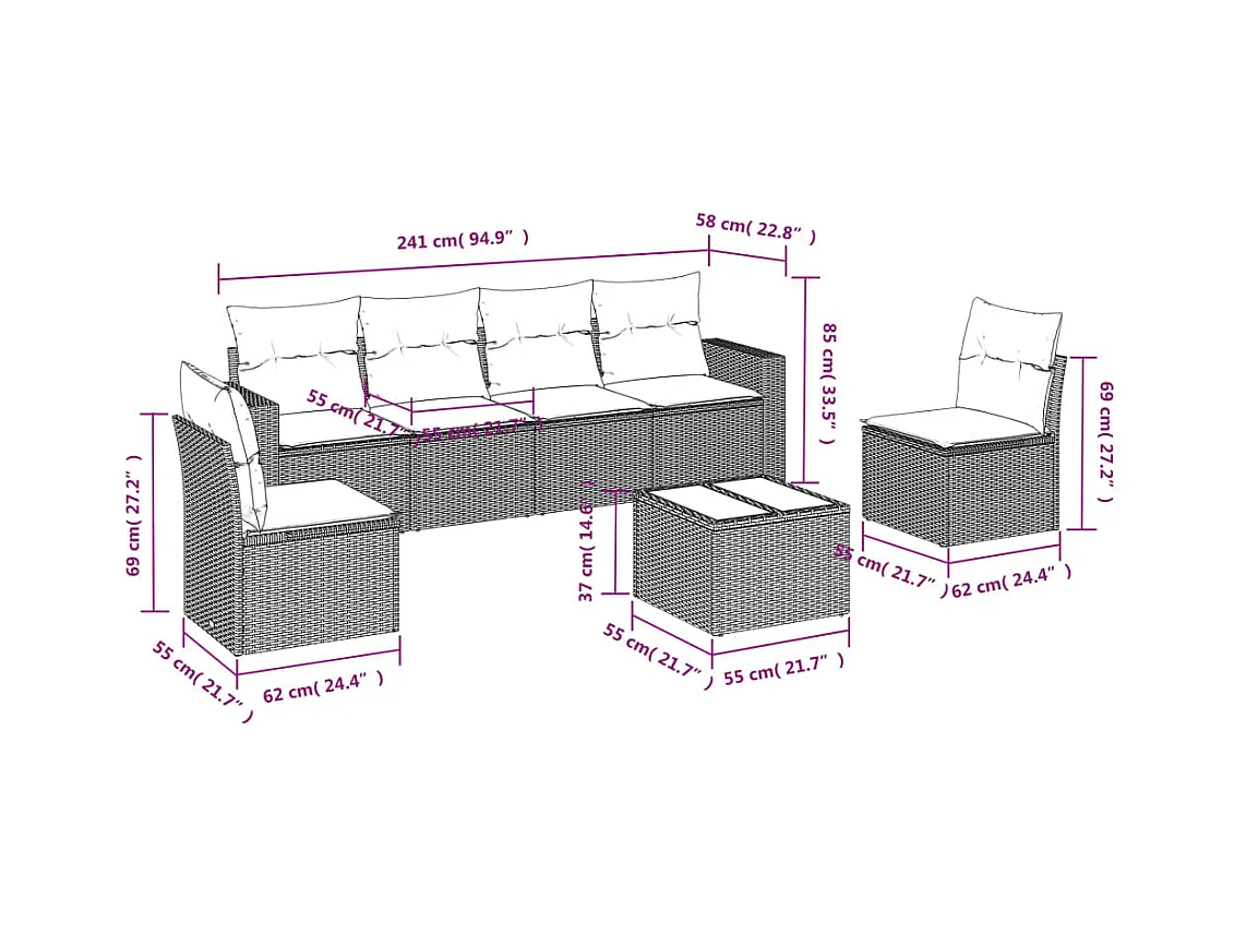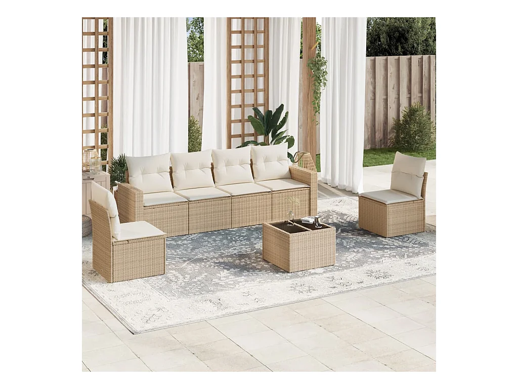 Muebles de jardín con cojines 7 piezas resina tejida beige