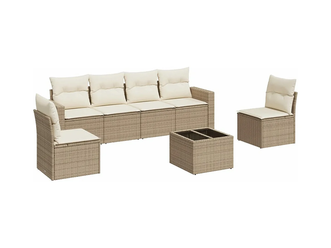 Muebles de jardín con cojines 6 piezas resina tejida beige