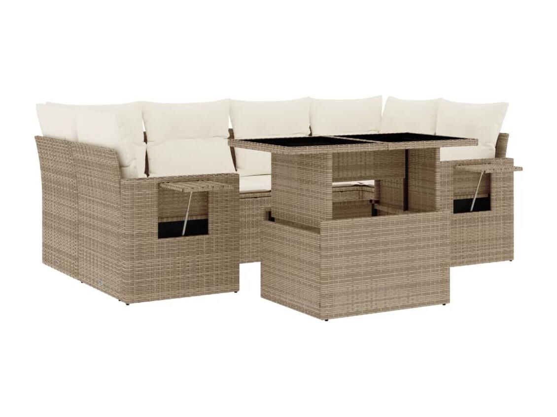 Set sofás de jardín 7 piezas y cojines ratán sintético beige