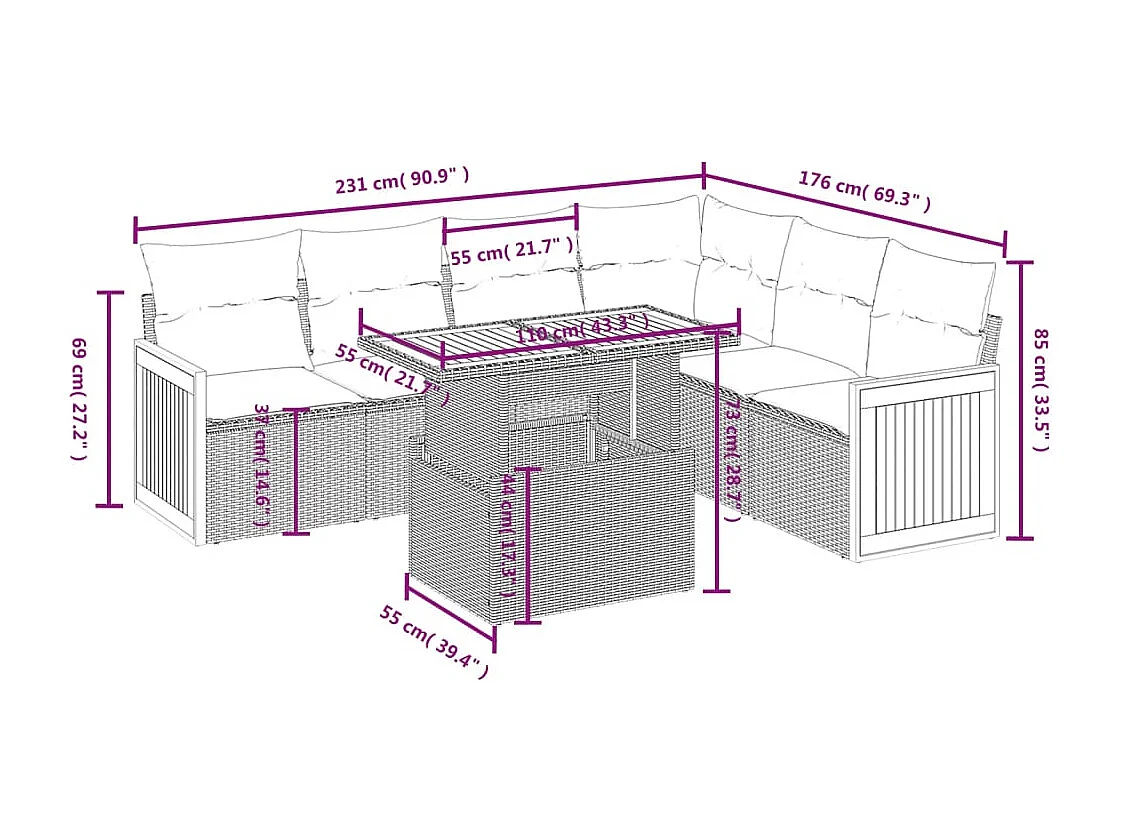 Set sofás de jardín 7 piezas y cojines ratán sintético beige
