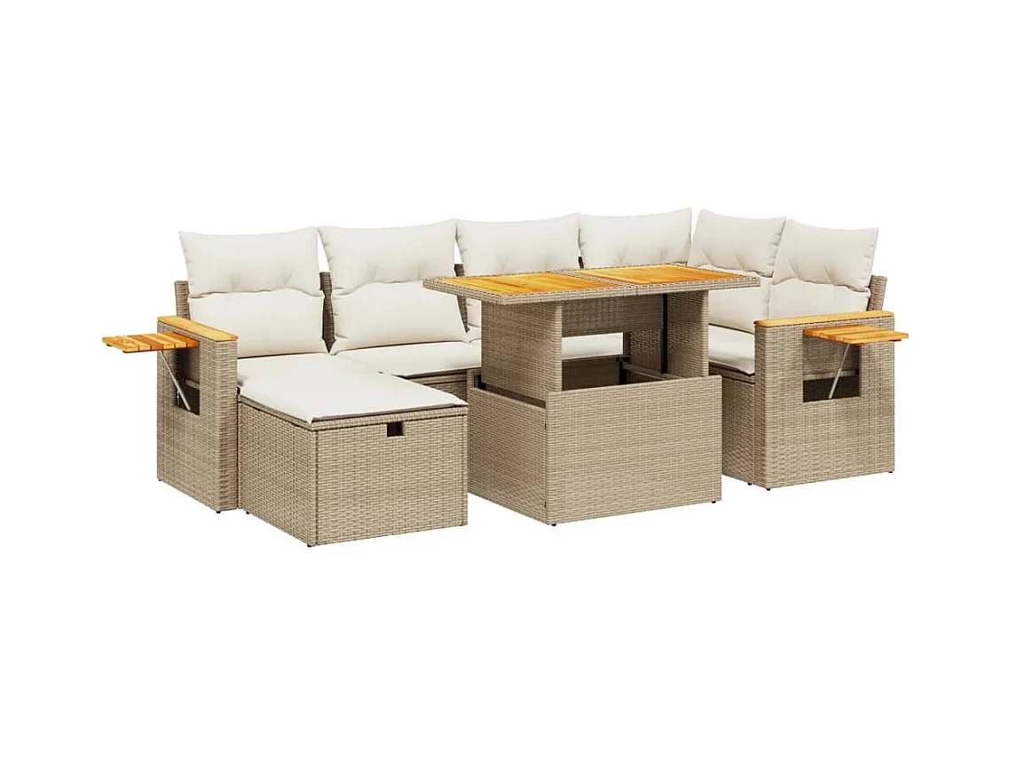 Set sofás jardín y cojines 7 piezas ratán sintético acacia beige