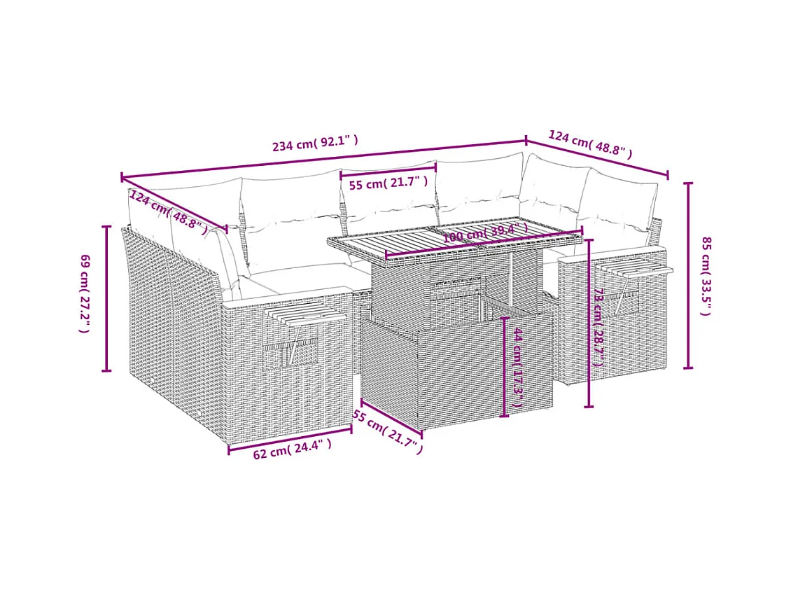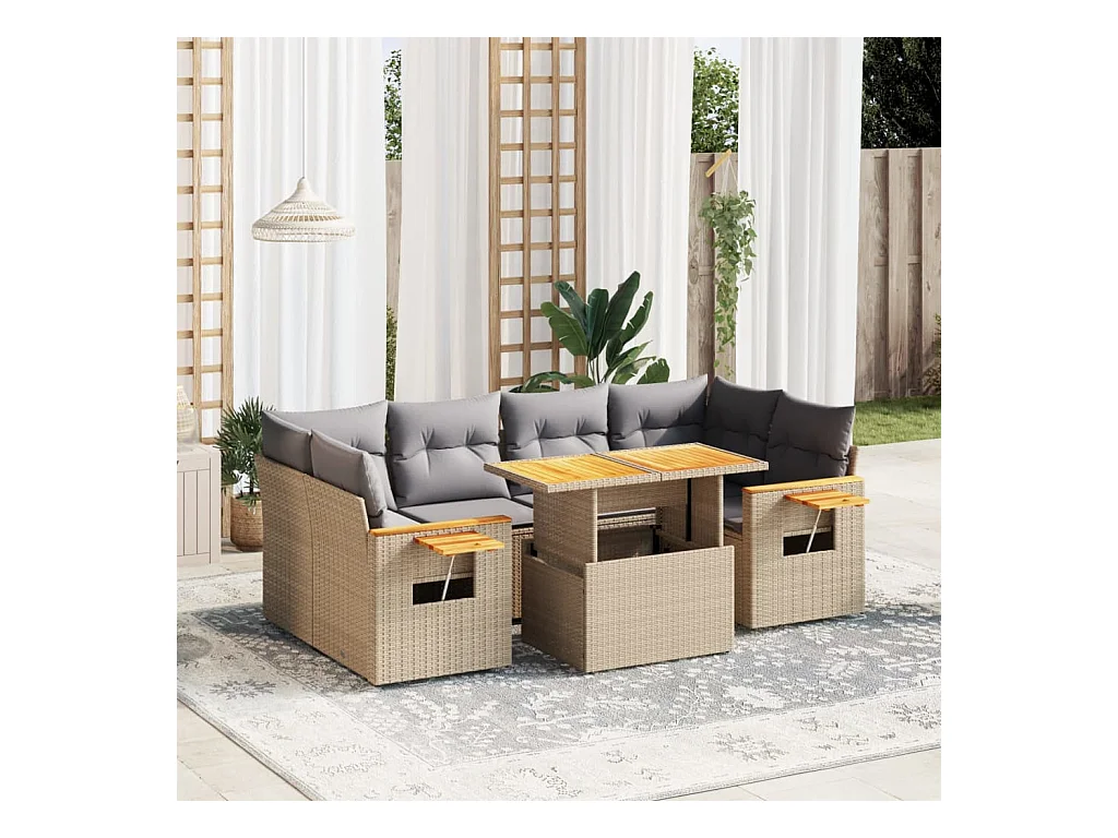 Set sofás de jardín 7 piezas y cojines ratán sintético beige